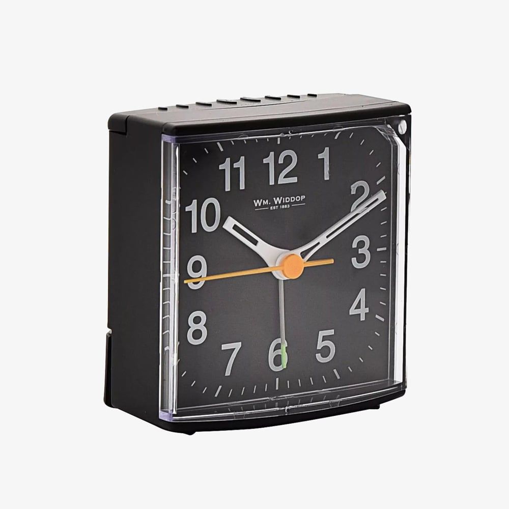 The Hometime black alarm clock combines timeless elegance with modern functionality, making it an ideal addition to any bedside table. Its sleek design is enhanced by a silent sweep movement, ensuring peaceful, uninterrupted sleep. The Arabic numeral dial offers clear time readability, while the LED light function provides gentle illumination. Featuring a reliable beep alarm and luminous silver hands, this clock is as practical as it is stylish. Perfect for those who appreciate both form and function in their everyday essentials.