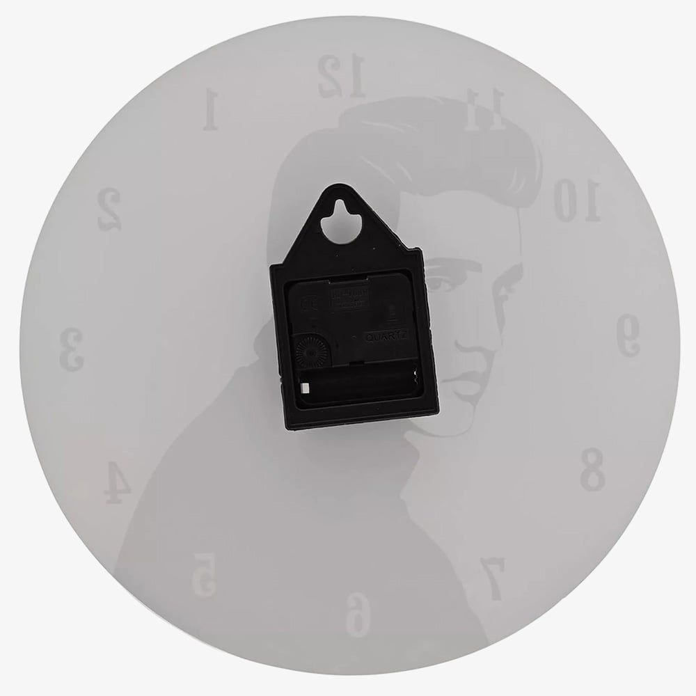 Decorate your home with this King Of Rock wall clock by Hometime. Celebrating an icon of the 50s and 60s, this glass wall clock powered by the Quartz movement for reliable timing has a monochrome design complete with slender silver tone hands. Battery operated, not included.