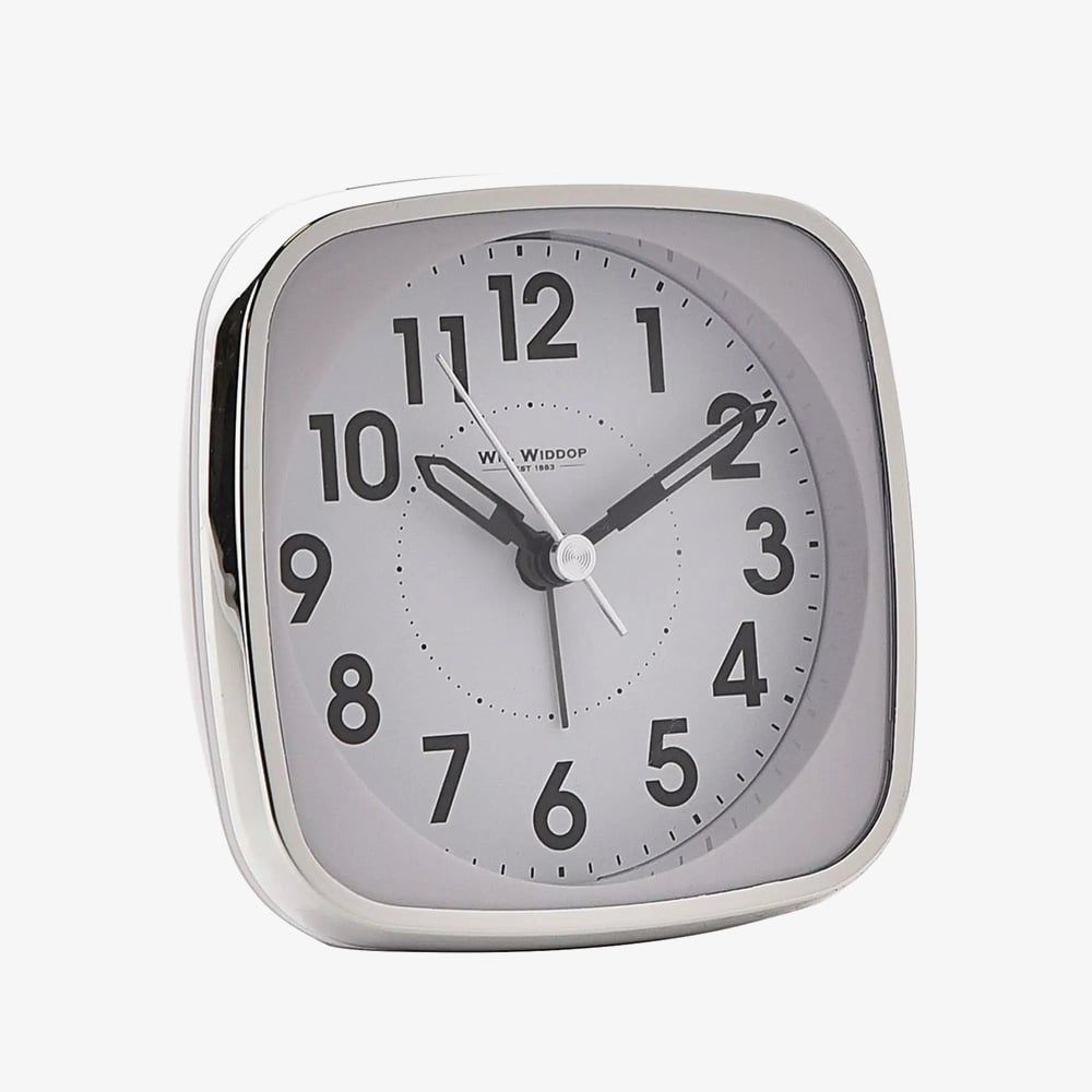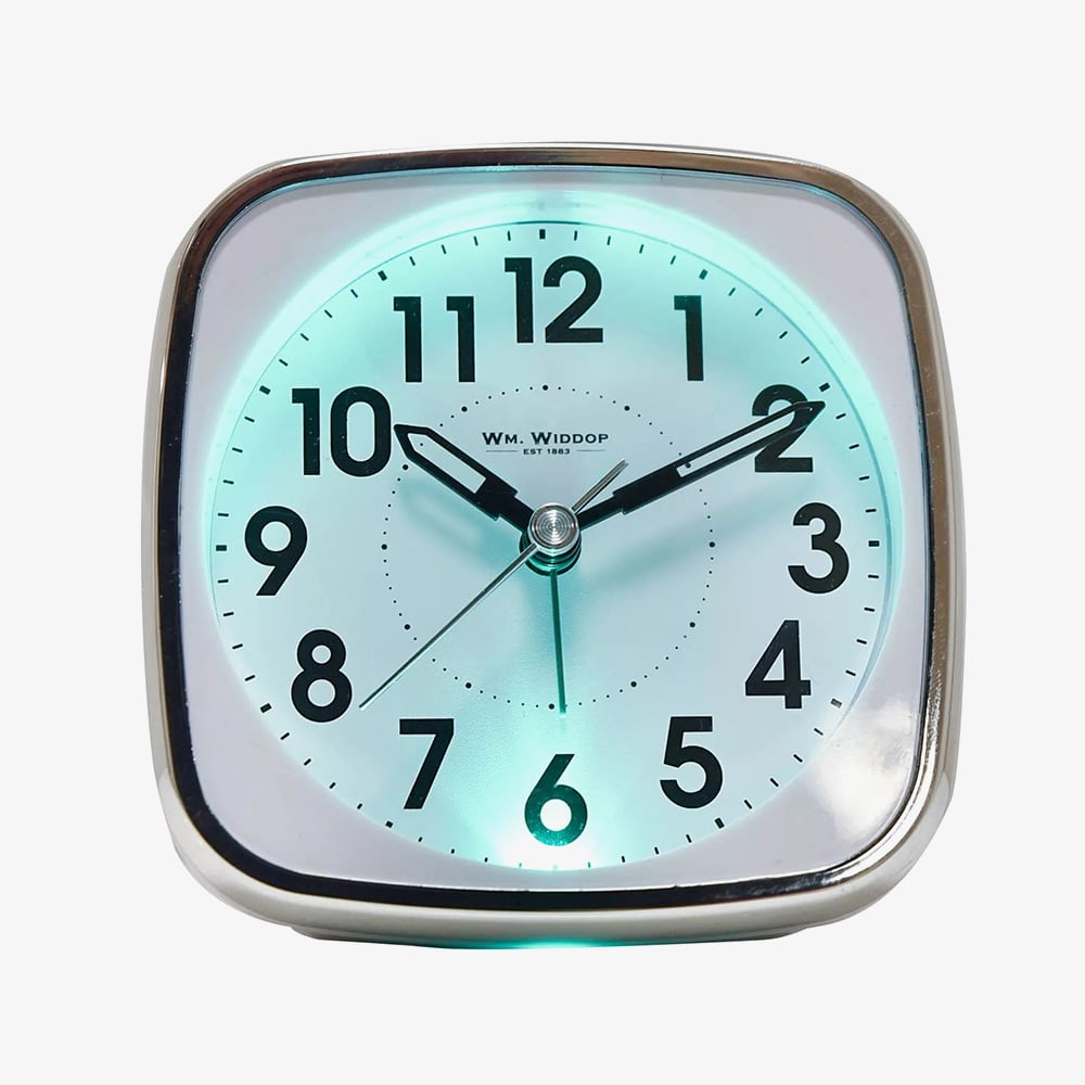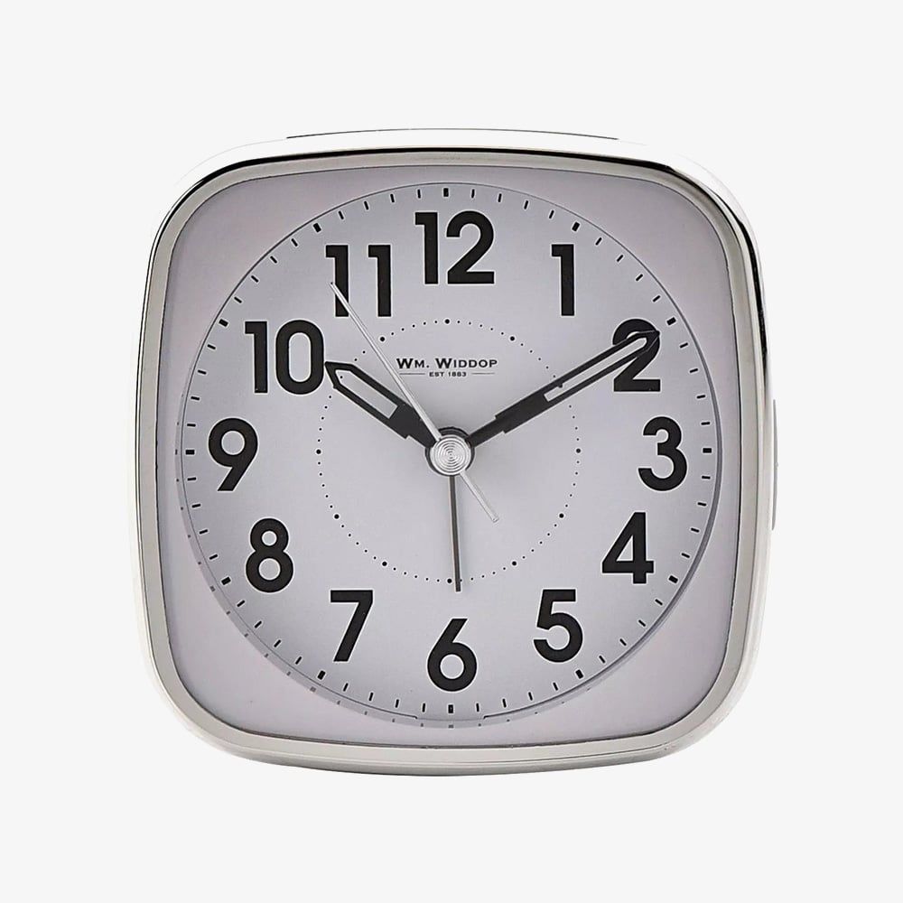 Brighten your bedside with this stylish white and silver alarm clock. It features an easy-to-read light-up Arabic dial, silent sweep movement, and matching sword hands. Complete with a beep alarm and snooze function, it blends classic design with modern convenience.