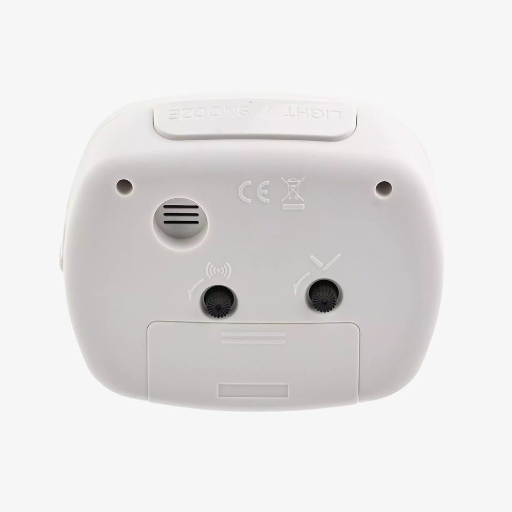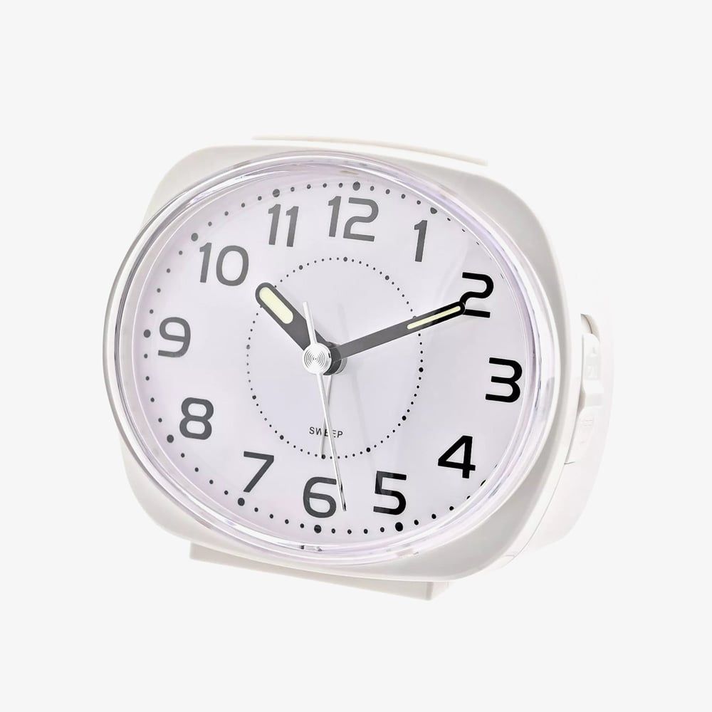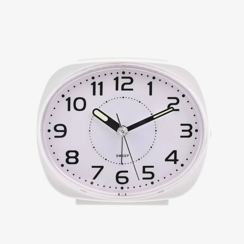 The Hometime oval white case alarm clock combines classic design with modern convenience. Featuring sweep movement for quiet operation, luminous hands, and bold black Arabic numerals, it ensures easy time reading. The beep alarm is easily adjustable with the back adjuster, and with just one AA battery, it offers straightforward, reliable performance—making it a perfect fit for any bedside table.