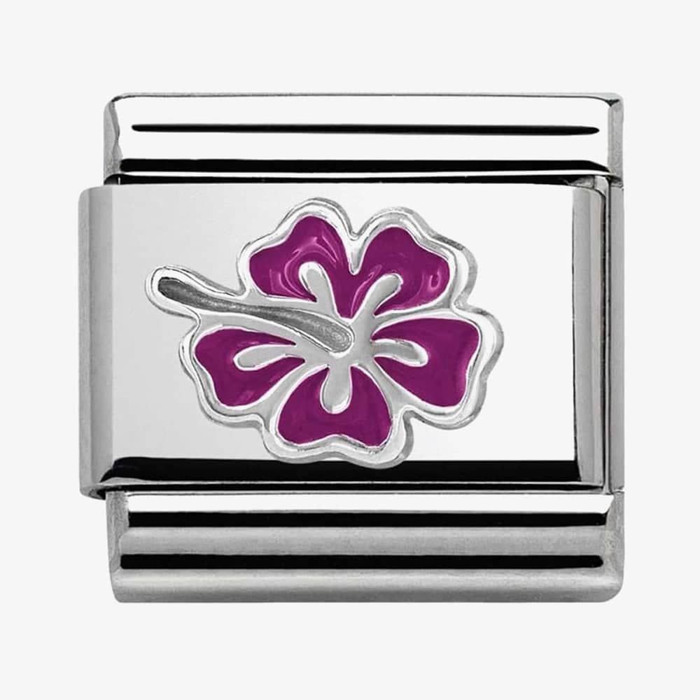 This lovely purple hibiscus design crafted from stainless steel and sterling silver. This elegant charm is sure to make a wonderful addition to any Nomination bracelet. This gorgeous charm is part of Nomination's Honolulu collection.