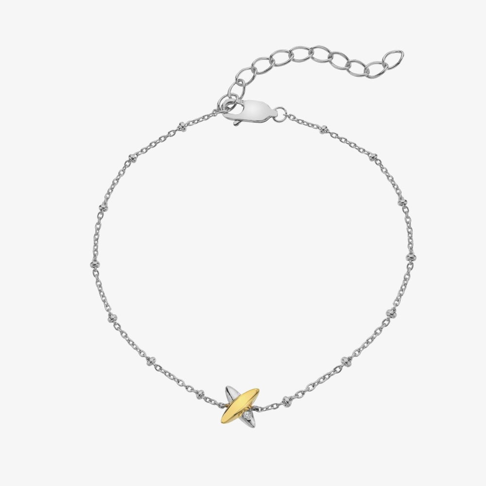 Sophisticated and versatile, the Coupled bracelet from Hot Diamonds features a delicate sterling silver chain accented with a stylish crossover ‘X’ design crafted in sterling silver and 18ct yellow gold plating. Finished with a hand-set single diamond, this bead bracelet perfectly balances modern elegance with timeless symbolism, ideal for layering or wearing solo as a meaningful statement.