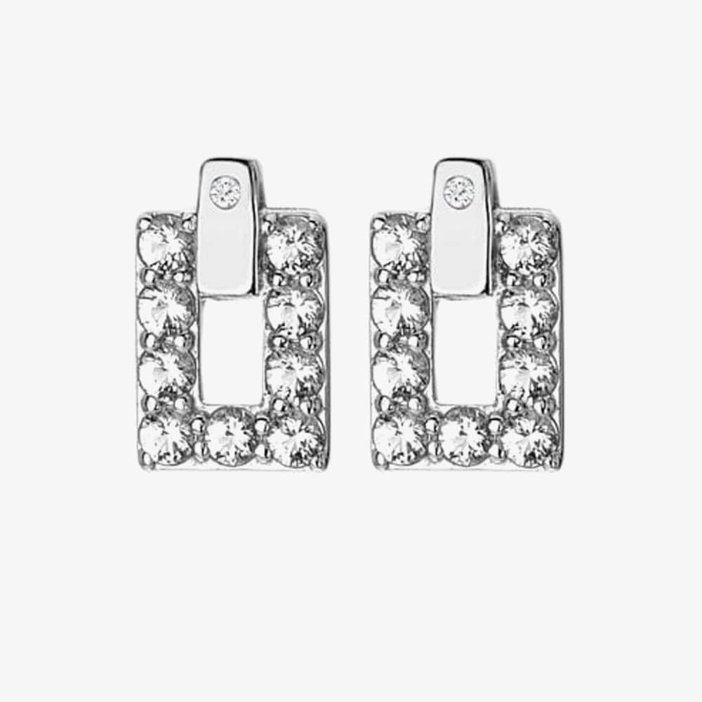 The Hot Diamonds Echo White Topaz Diamond Rectangle Stud Earrings DE717 are delicately crafted from 925 sterling silver. These beautiful stud earrings feature an open rectangular design set with natural white topaz stones and a single white diamond.