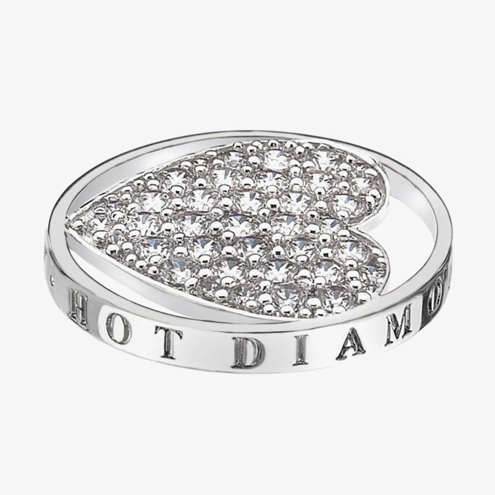 Celebrate love and sparkle with the Hot Diamonds Emozioni Scintilla Love Coin. Crafted for 33mm Emozioni coin keepers, this stunning piece is plated in sterling silver and set with dazzling white cubic zirconia in a romantic design. A radiant addition to your personalised jewellery collection, perfect for marking special moments.