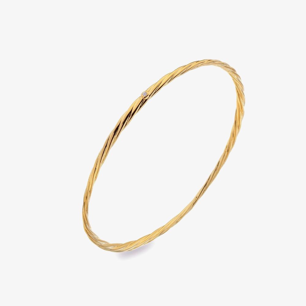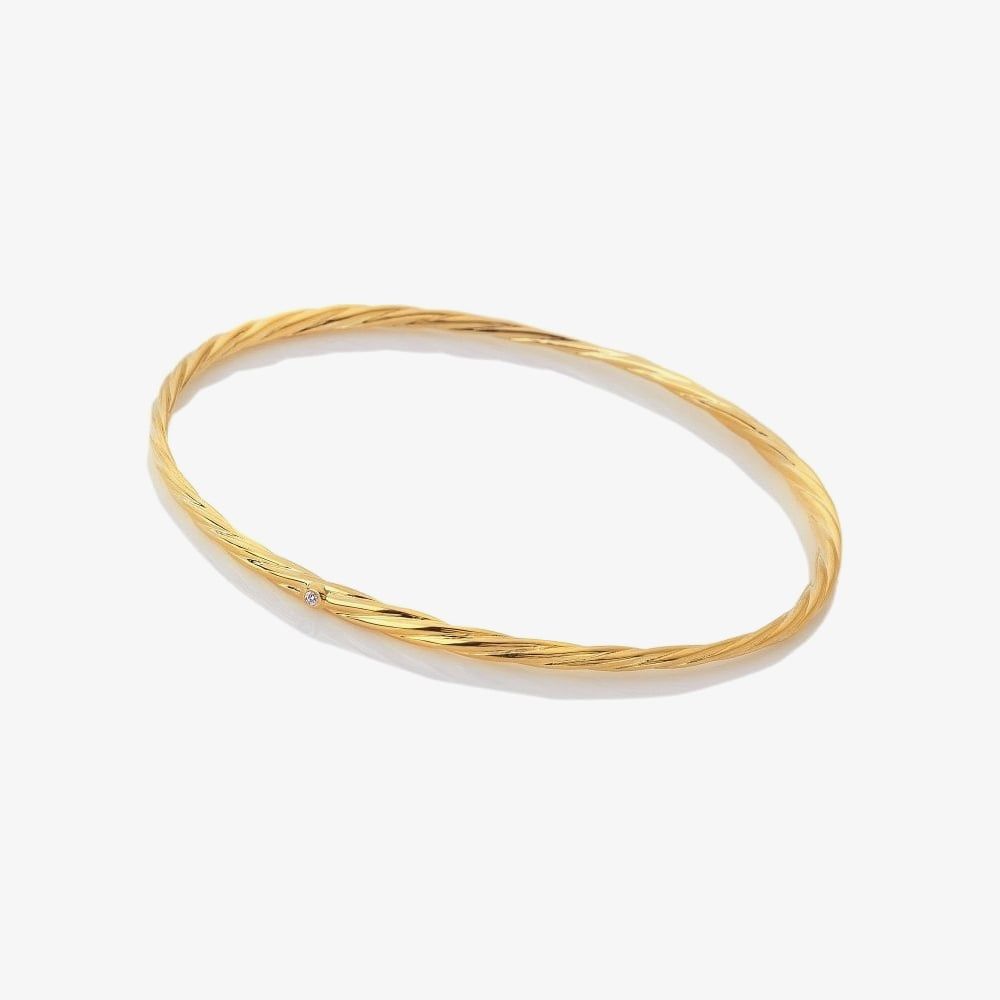 The Entwine suite draws inspiration from woven textures, translating beautifully into elegant jewellery. This bangle is incredibly versatile, and we absolutely love it! Crafted from 925 sterling silver, plated with 18ct gold, and hand-set with a real diamond, it’s a stunning addition to any collection.