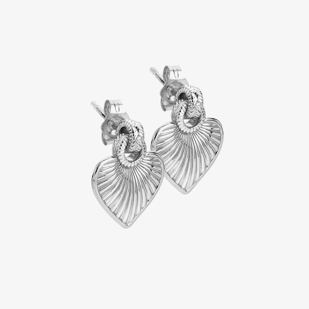 The Hot Diamonds Essence stud earrings feature a sterling silver sunbeam heart design, each adorned with a single diamond for a touch of elegance and sparkle.