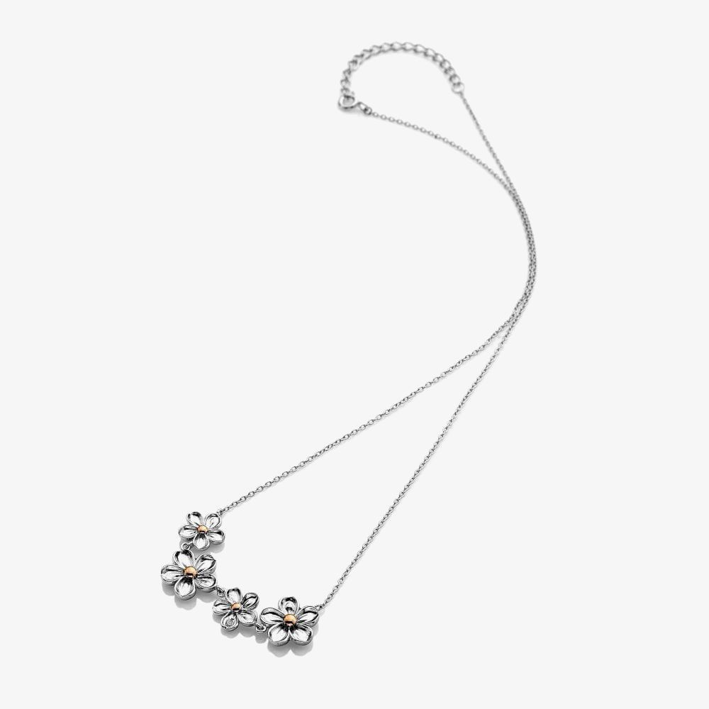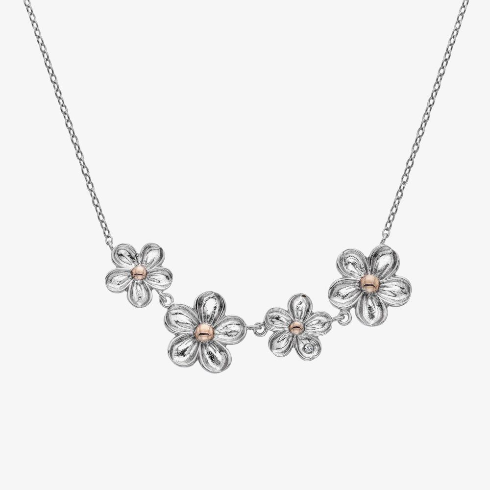 From our Forget Me Not Collection: The Forget Me Not is a floral celebration of true love and remembrance. This necklace measuring 45cm in length is delicately crafted in sterling silver highlighted with rose gold and adorned with a real diamond. The necklace also has a small extender chain allowing it to be worn at a shorter length.