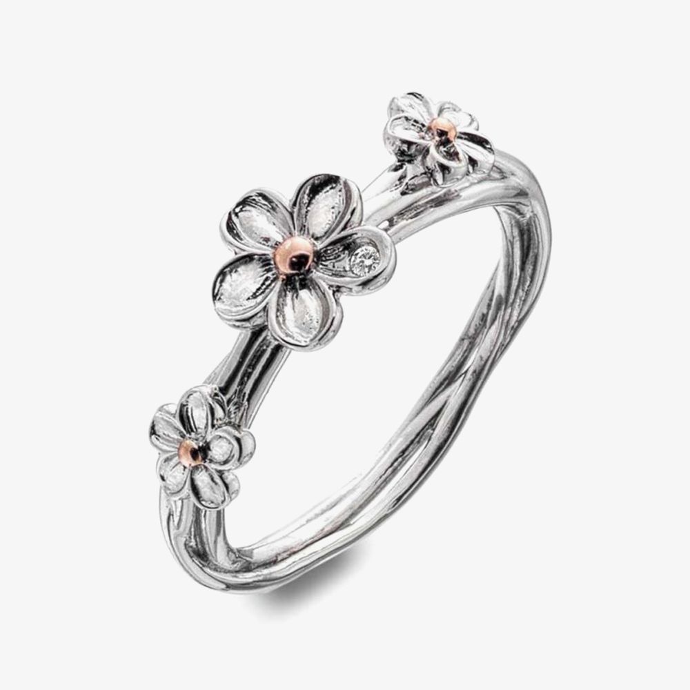 Providing a classically beautiful look for everyday and special occasion wear alike, this unique Forget Me Not Ring is an easy way to make a stunning statement and celebrate love and remembrance. Made from high-quality 925 sterling silver and featuring three small forget-me-not flowers with rose-gold detail and adorned with a real diamond - as with all Hot Diamonds jewellery - this ring from the 'Forget Me Not' collection is set to give anyone who wears it an elegance and unique style not found elsewhere, and would be a wonderful gift for you or someone you care about.