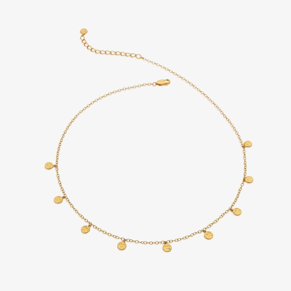 Hot Diamonds HD X Golden Edit Lunar Necklace DN149 is crafted from 925 sterling silver with an 18ct gold plating. This delicate belcher chain features 9 round inconstant lunar surface discs; one disc is hand-set with a clear diamond. The chain is adjustable, measuring approximately 40-45cm in length, with a lobster claw clasp to fasten.