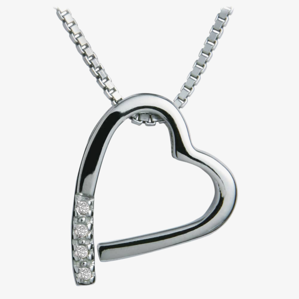 Whether you're celebrating old memories or you're busy building new ones, make this a fine addition to her jewellery box. The stunning silver heart is festooned with brilliant diamonds and set onto a box chain for extra glitter.