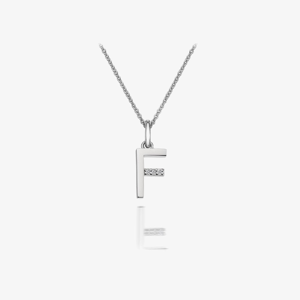 From the Hot Diamonds Love Letters collection, this elegant necklace features a sterling silver micro chain and a beautifully crafted letter F pendant, adorned with three sparkling diamonds. With a 40cm length and 5cm extender, it’s a delicate and meaningful piece, perfect for everyday wear or gifting.