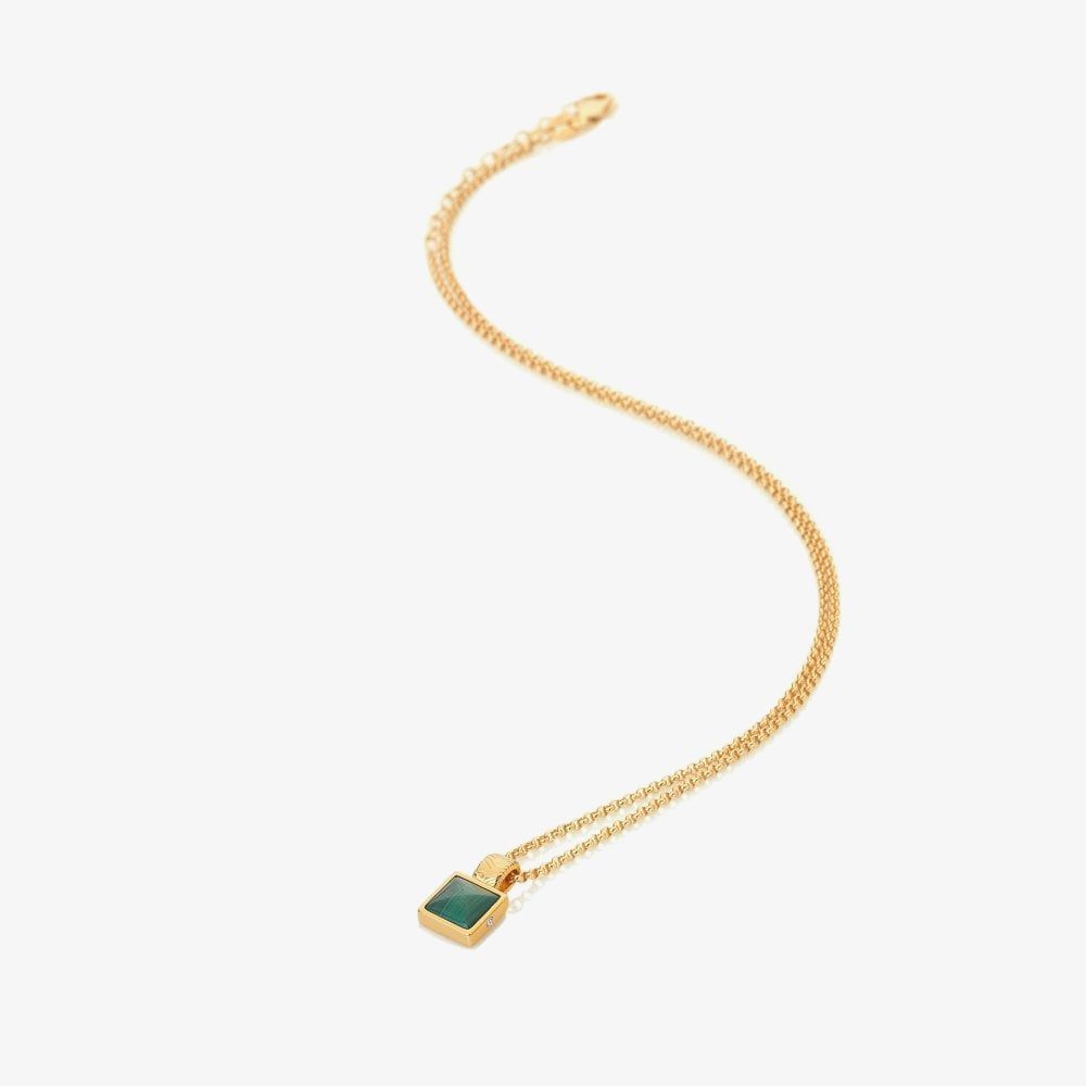 Malachite is a breathtaking gemstone, and I’ve loved working with its rich green hue and unique milky patterns. Known for inspiring inner strength, it’s a meaningful addition to any collection. Adding a touch of colour when layering enhances the gold beautifully, which is why we adore the 'Revive' suite. This pendant is crafted from genuine malachite, 925 sterling silver, 18ct gold plate, and a real hand-set diamond. It measures 8mm x 14mm, including the bail.