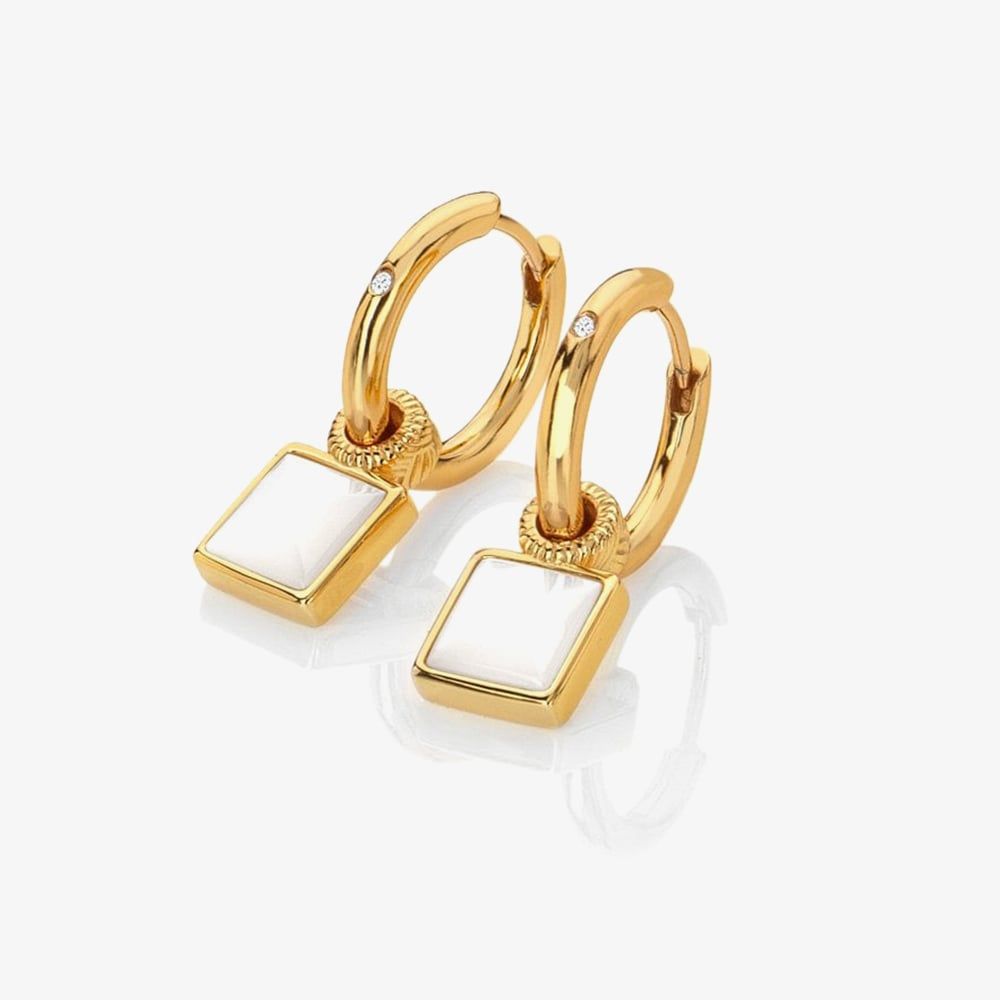 Hot Diamonds Revive 18ct Gold Plated Mother Of Pearl Diamond Square Hoop Dropper Earrings DE714