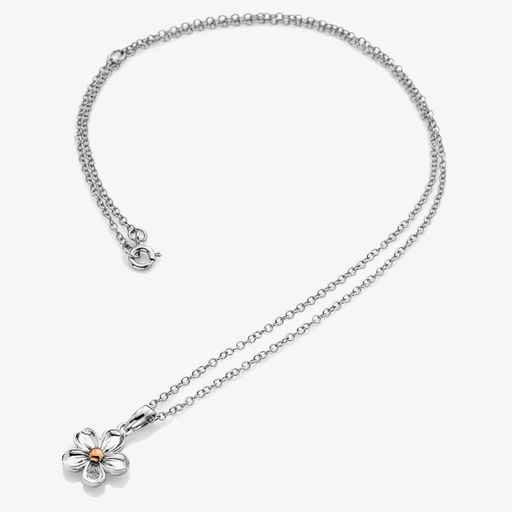 From our Forget Me Not Collection: The Forget Me Not is a floral celebration of true love and remembrance. This pendant measuring 18mm (including clasp) in length is delicately crafted in sterling silver highlighted with rose gold and adorned with a real diamond. The pendant is supplied on a 16" to 18" extendable sterling silver chain