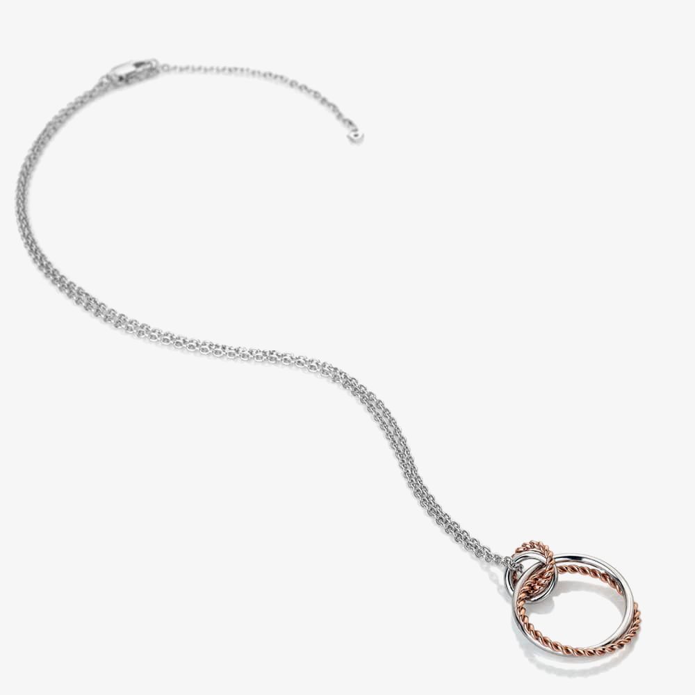 From our Unity Collection: The connected sterling silver and rose gold plated circles in this Unity pendant are a celebration of the strength and beauty of pure unity. This pendant adorned with a real diamond measures 21mm wide by 25mm high and is presented on a 40-45cm (16-18") extendable sterling silver chain.