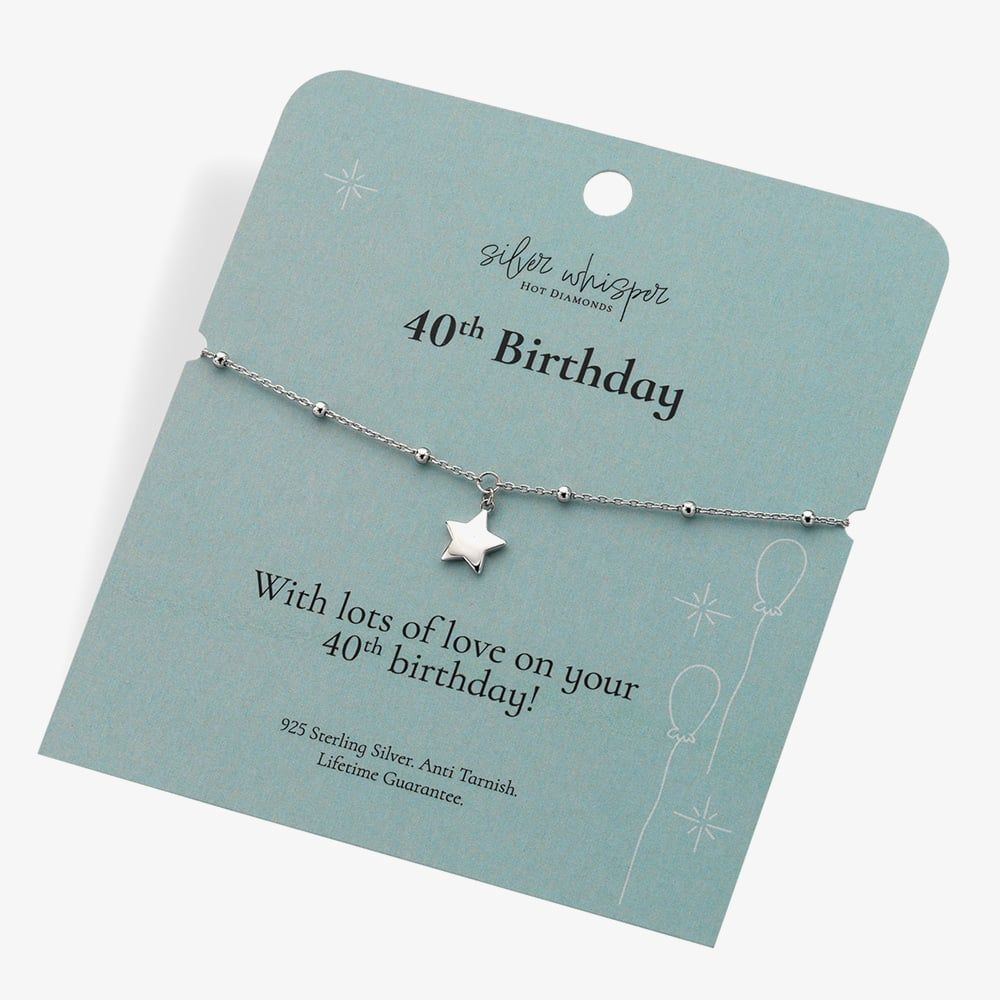 Celebrate a shining milestone with this elegant sterling silver ball and chain bracelet, adorned with a delicate star charm to symbolise guidance, dreams, and brilliance. A timeless piece designed to mark a special 40th birthday, it comes beautifully mounted on a card featuring a heartfelt birthday message. The perfect keepsake to honour four decades of life, love, and light.
