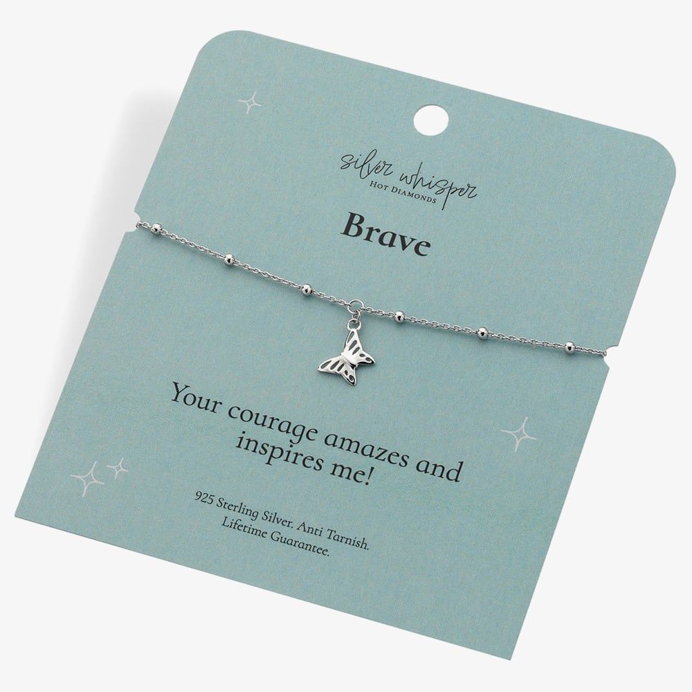 Delicate yet powerful, this sterling silver bead and chain bracelet features a graceful butterfly charm a symbol of transformation, courage, and inner strength. Thoughtfully presented on a card with an inspiring message about being brave, this bracelet is a meaningful gift to encourage someone facing change or challenges.