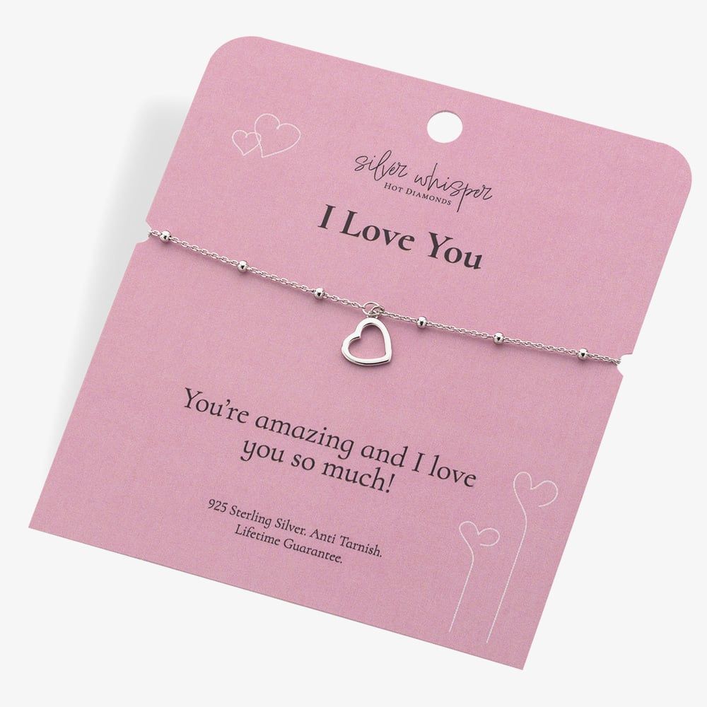 Express your love in the most timeless way with this sterling silver bead and chain bracelet, featuring a delicate open-heart charm. A symbol of love, affection, and connection, this bracelet is the perfect way to show someone how much they mean to you. Presented on a card with a special “I love you” message.