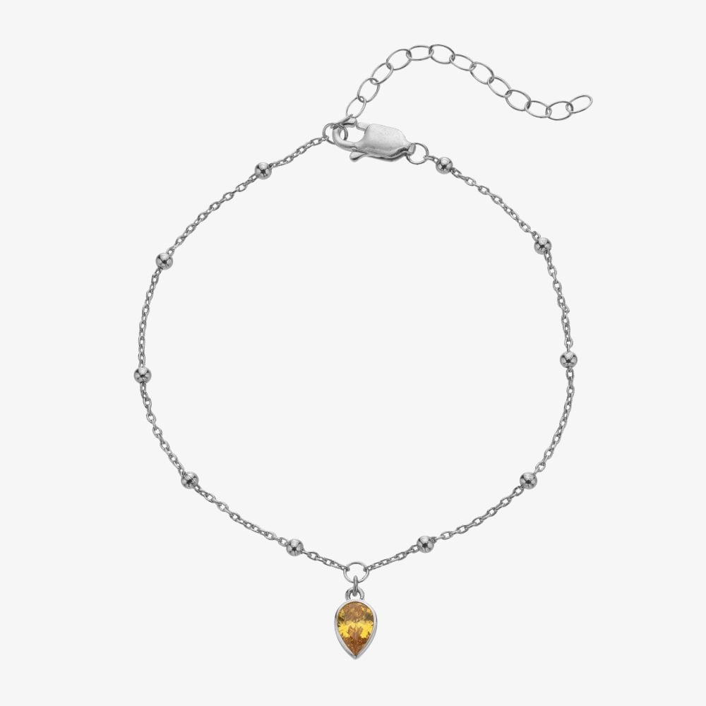 Celebrate November birthdays with the elegant Hot Diamonds Silver Whisper November Birthstone Bracelet. Crafted from rhodium-plated sterling silver, this adjustable chain and bead style bracelet features a stunning pear-shaped charm in yellow cubic zirconia. Presented on a stylish gift card, it makes a beautiful and meaningful gift to add a personal touch to any outfit.