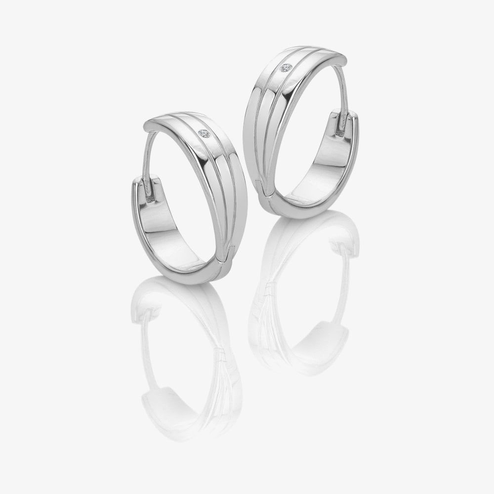 The Hot Diamonds Trio Collection huggie earring showcases three sleek rows of sterling silver, elegantly hand-set with a real diamond for timeless sparkle and style.
