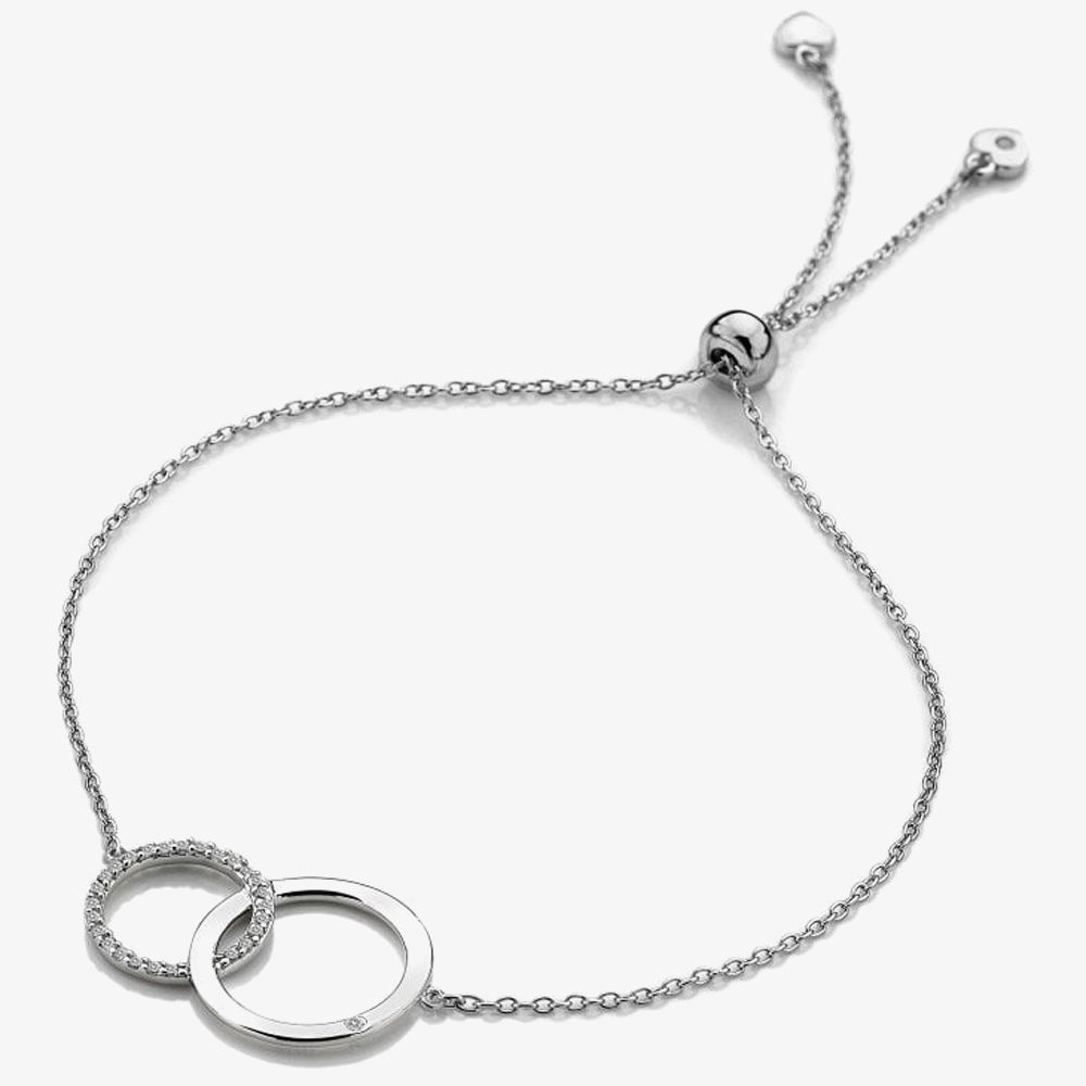 From our Striking Collection: This collection features striking yet delicate and dainty pieces full of sparkling white topaz gemstones symbolising love and affection. The double circle interlocking bracelet is graced with precious white topaz making it an extra sparkly piece to treasure forever! The draw toggle allows the bracelet to perfect fit any size of wrist! This bracelet charm measures 25mm x 15mm on a 24cm chain.