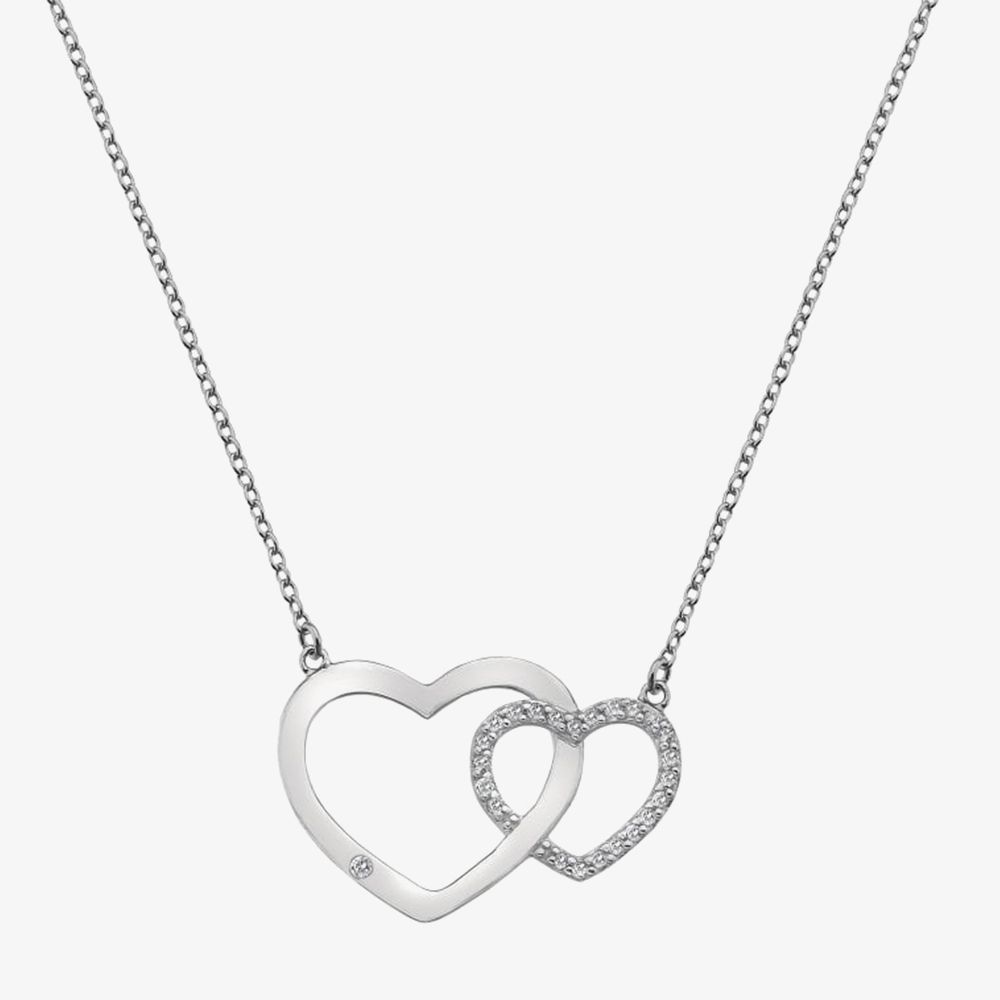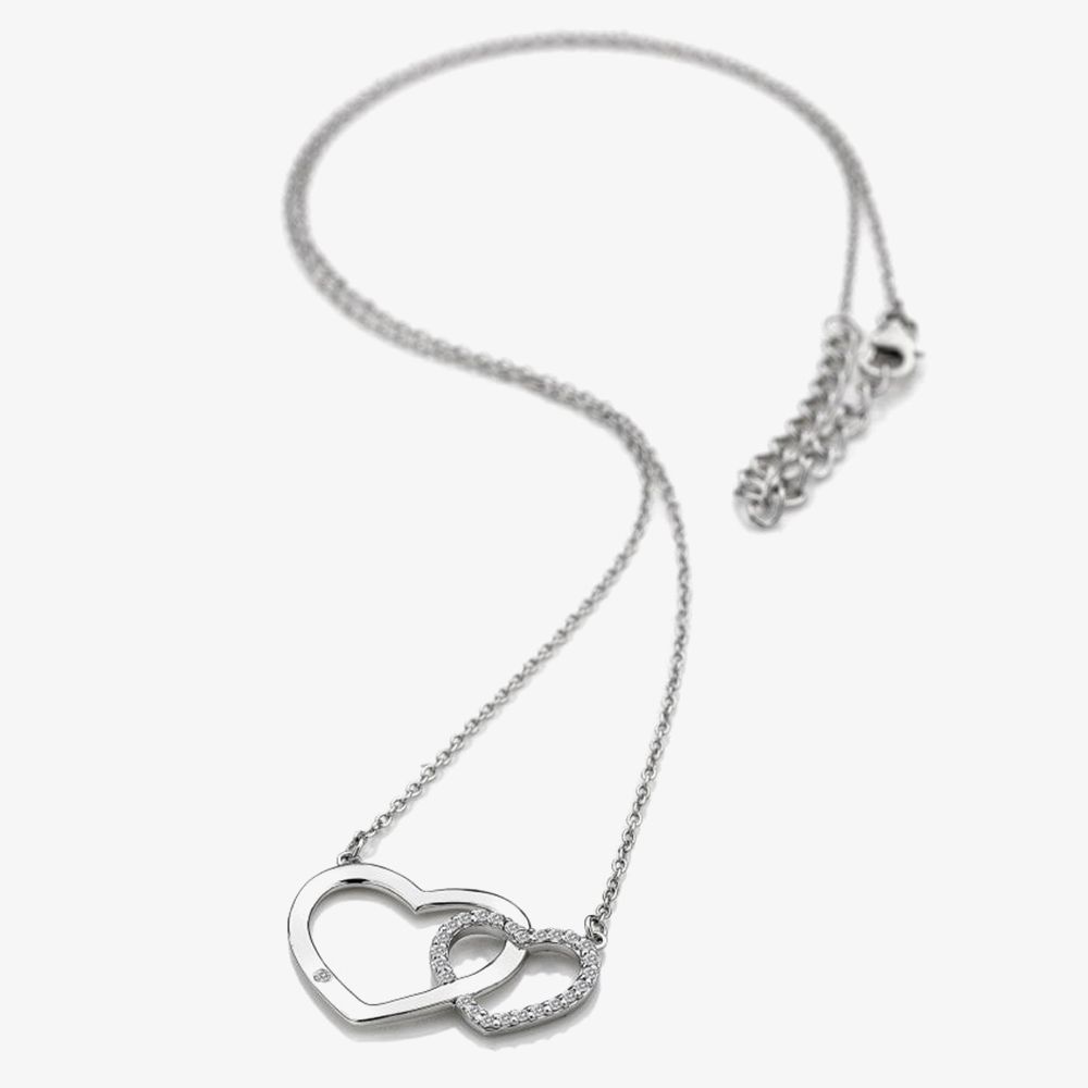Showcasing simple design and beauty, the Striking Interlocking Hearts Necklace is the perfect way to add some elegance to any occasion. Made from high-quality rhodium-plated 925 sterling silver, this stunning 42cm trace chain necklace from the 'Striking' collection fastens with a lobster-claw clasp and has a 4cm extension chain. Featuring a 24mm wide interlocking heart design, the necklace features a small heart studded with white topaz stones to give you some added sparkle. In line with the Hot Diamonds design, the necklace also includes a small diamond.
