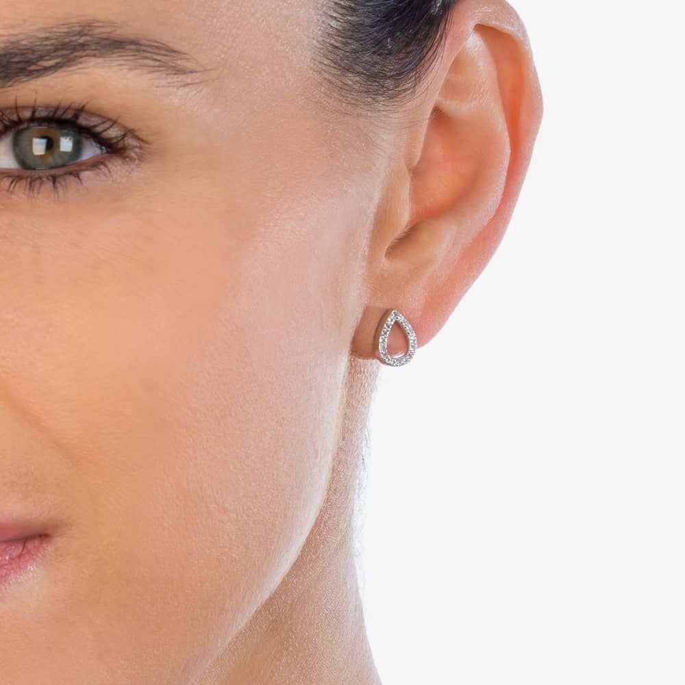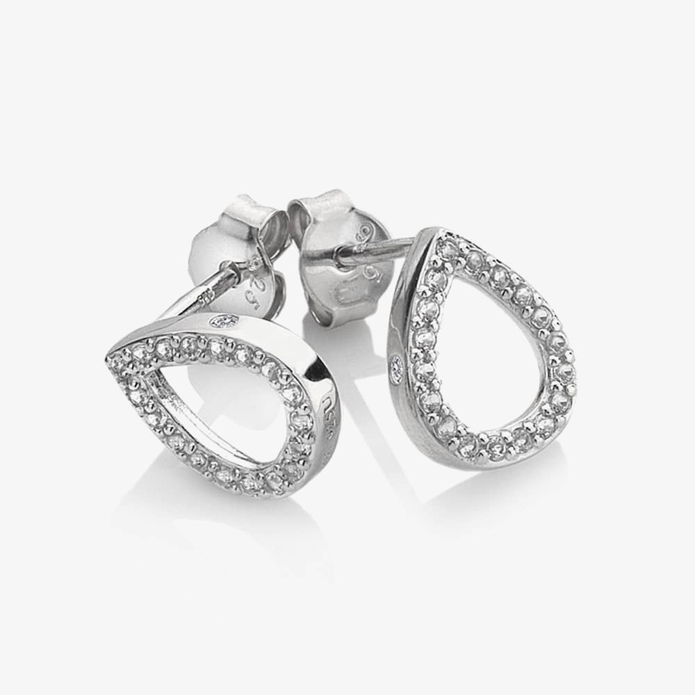 From our Bliss Collection: Hand set with precious white topaz these stunning teardrop earrings are sparkling with love and affection. The earrings measure 10mm x 8mm and are adorned with a real precious diamond.