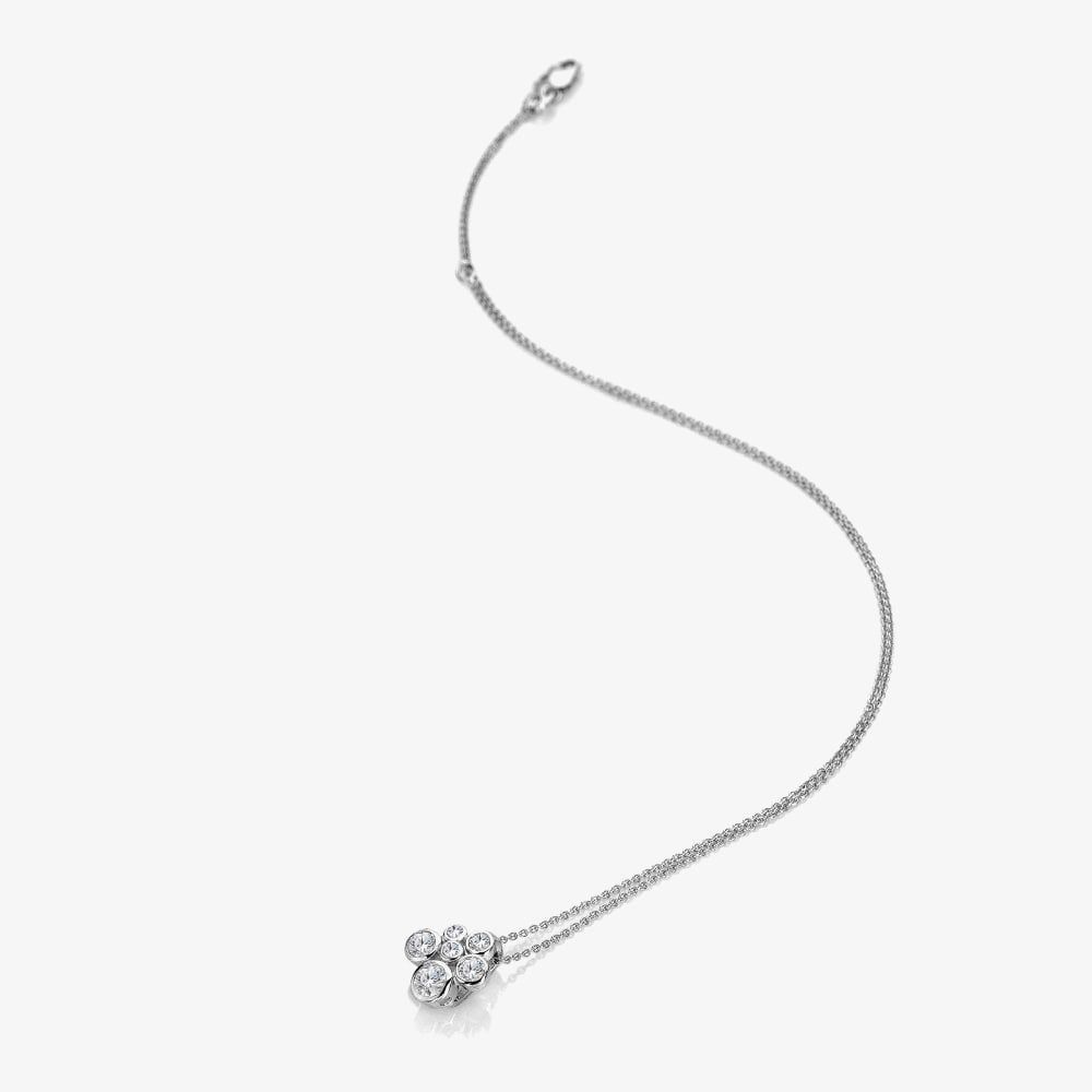 The Hot Diamonds Tender Sterling Silver Necklace showcases a delicate trace chain with a stunning cluster pendant featuring six sparkling white topaz stones. Elegantly crafted, this piece exudes timeless beauty and sophistication. This necklace features a clasp adorned with a small, shimmering diamond for a touch of elegance.