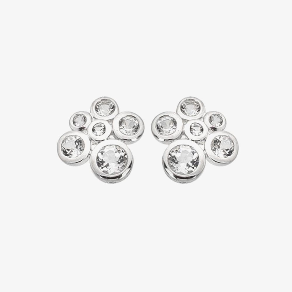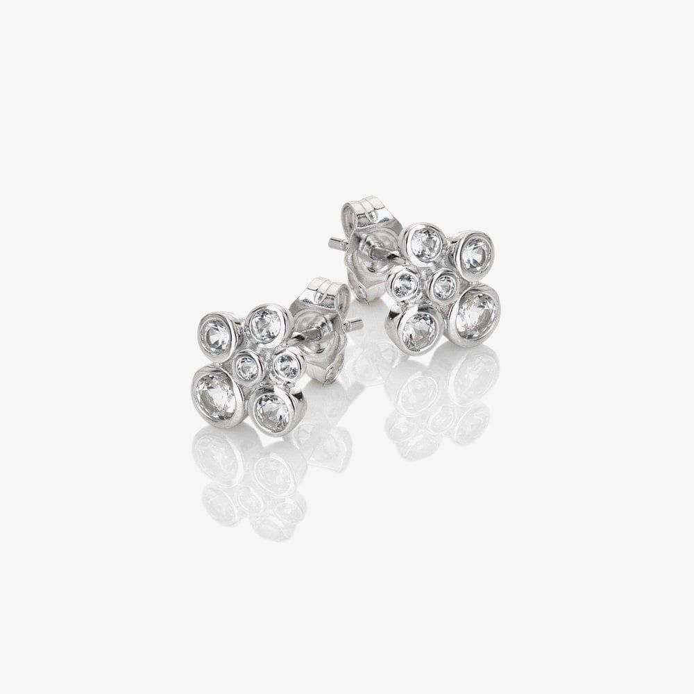 The Hot Diamonds Tender stud earrings feature sterling silver settings, each adorned with a white topaz stone and a single diamond for a delicate, sparkling touch.
