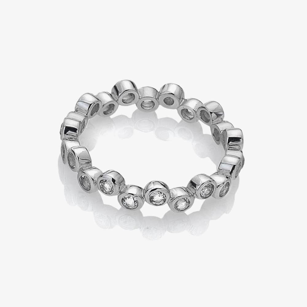 Part of the Hot Diamonds Tender collection, and crafted from beautiful sterling silver and adorned with luxurious circular white topaz stones. The brilliance of the topaz is beautifully complemented by a sleek, polished band, creating a look that's both classic and contemporary.