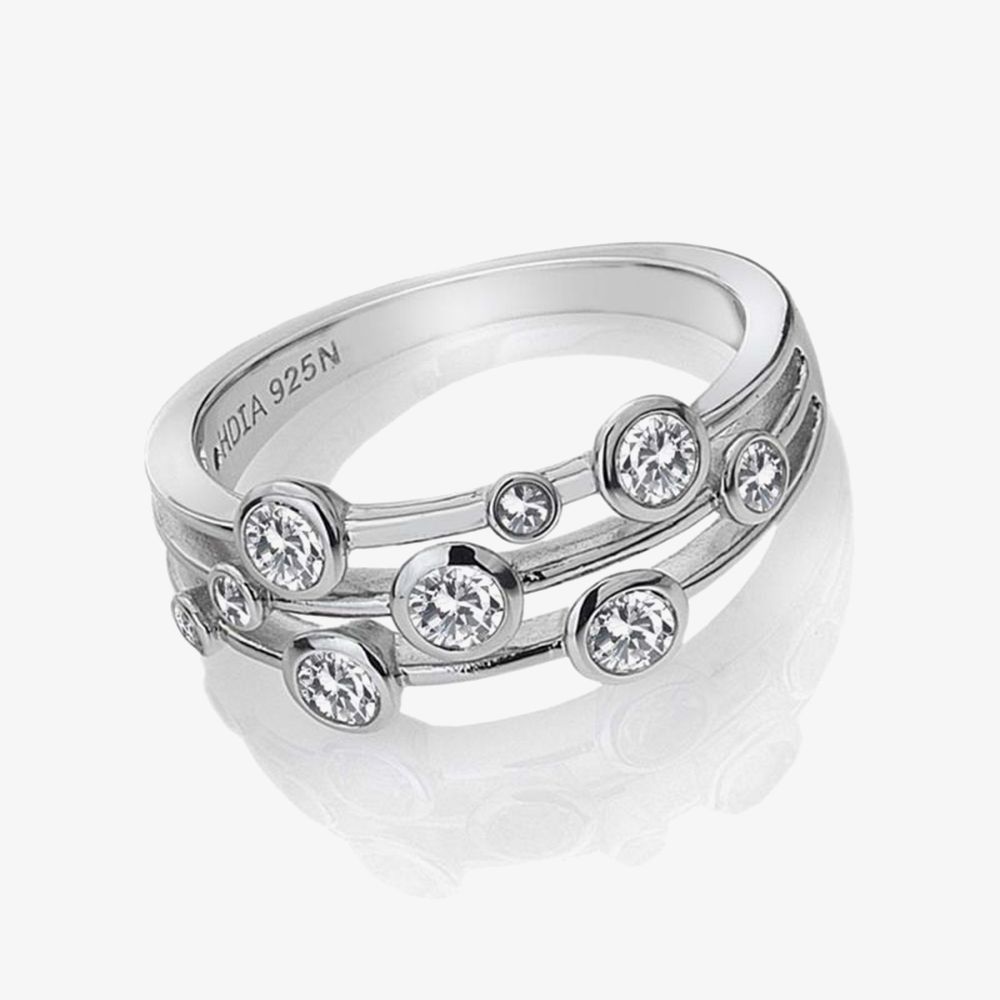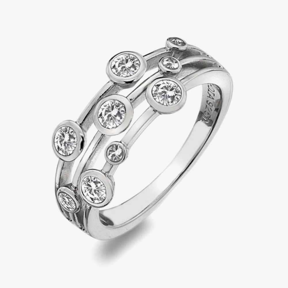 Providing a classically beautiful look for everyday and special occasion wear alike, this simple yet striking Tender White Topaz Multi-Stone Ring is an easy way to make a stunning statement with its precious circular white topaz stones reminiscent of raindrops, situated across three bands in a rub-over setting. Made from high-quality 925 sterling silver and adorned with a real diamond - as with all Hot Diamonds jewellery - this ring from the 'Tender' collection is set to give an air of luxury and elegance to anyone who wears it and would be a wonderful gift for you or someone you care about.
