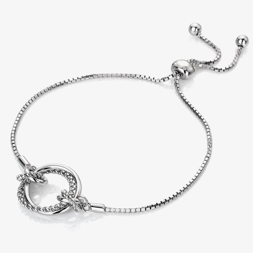 From our Unity Collection: The connected sterling silver circles in this Unity bracelet are a celebration of the strength and beauty of pure unity. This bracelet adorned with a real diamond is 25cm long. The circle detail is 17mm wide by 17mm high