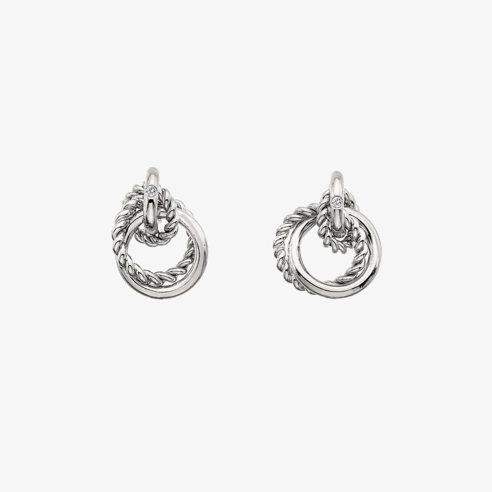 From our Unity Collection: The connected sterling silver circles in these Unity earrings are a celebration of the strength and beauty of pure unity. These earrings adorned with a real diamond in each ear measure 11mm at their widest point by 15mm at their highest.