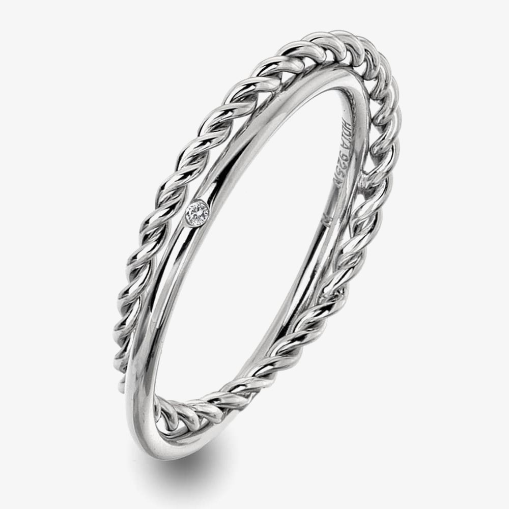 Providing a classically beautiful look for everyday and special occasion wear alike, this simple Unity Silver Diamond Rope Ring is an easy way to make a stunning statement with its intertwining rings with plain and rope design detailing meant to symbolise love and unity. Made from high-quality 925 sterling silver and adorned with a real diamond - as with all Hot Diamonds jewellery - this ring from the 'Unity' collection is set to give an air of luxury and elegance to anyone who wears it and would be a wonderful gift for you or someone you care about.