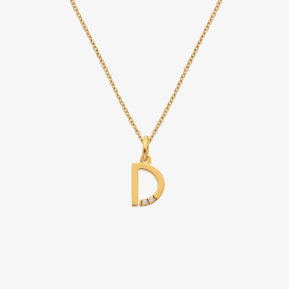 The HD X Golden Edit Golden Edit D Pendant Necklace is crafted in 18ct gold plated sterling silver and features a sleek, modern 'D' initial set with two genuine diamonds for a subtle hint of sparkle. Suspended from a 40cm chain with a 5cm extender, it’s a personal and elegant piece, perfect for everyday wear or gifting.