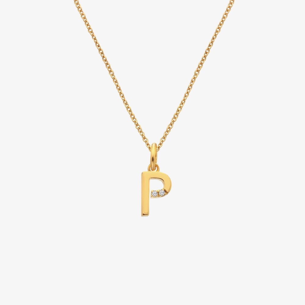 The HD X Golden Edit Golden Edit P Pendant Necklace is crafted in 18ct gold plated sterling silver and features a sleek, modern 'P’ initial set with two genuine diamonds for a subtle hint of sparkle. Suspended from a 40cm chain with a 5cm extender, it’s a personal and elegant piece, perfect for everyday wear or gifting.