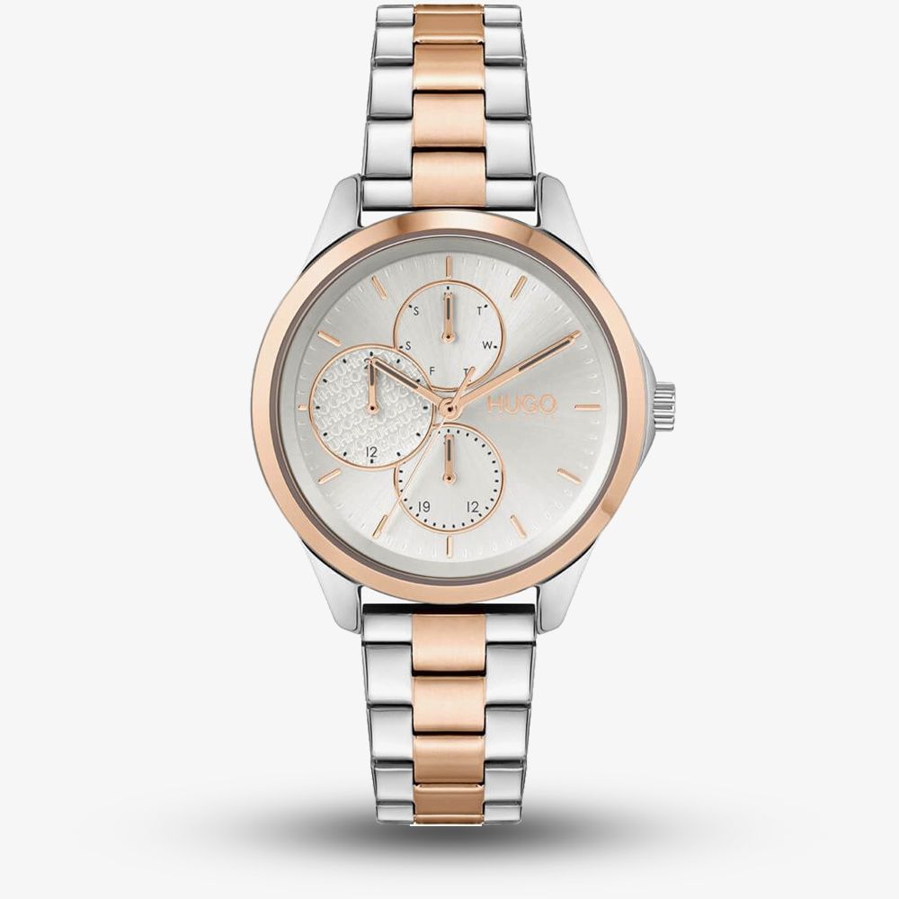 https://www.thbaker.co.uk/hugo-ladies-fearless-multi-silver-watch-1540097108242HUGO Ladies #Fearless Multi Watch 1540097https://www.thbaker.co.uk/media/catalog/product/2/5/25-22-033-1.jpg149.95199GBPOutOfStock#FEARLESS SS/RGP BW SIL The HUGO 1540097 #FEARLESS MULTI watch combines a 36.80mm two tone stainless steel case and a two tone stainless steel bracelet with a push button deployment clasp. It has a silver tone/ white analogue dial with three subdials and rose gold tone accents, which is protected beneath mineral crystal glass. Power is generated by the quartz movement. This model also has a water resistance of up to 30 metres.HUGOhttps://www.thbaker.co.uk/media/catalog/product/1/5/1540097_side_3.jpghttps://www.thbaker.co.uk/media/catalog/product/1/5/1540097_back_2.jpghttps://www.thbaker.co.uk/media/catalog/product/1/5/1540097_wrist_4.jpghttps://www.thbaker.co.uk/media/catalog/product/h/u/hugo_packaging_1_9.jpghttps://www.thbaker.co.uk/media/catalog/product/h/u/hugo_packaging_2_9.jpg7613272442961condition:Nodisc_no_stock:Yesex_display:NoNoYesNo2522033HUGO1540097LadiesOfficial Official HUGO Packaging Packaging2 Year HUGO WarrantyFashionNo#FEARLESS MULTIWatchTwo ColourStainless Steel BraceletStainless SteelRound37mmAnalogueMineral Crystal GlassSilver30 metresQuartzPush Button Deployment ClaspNo StoneNoNoNoNoYesNoNoHUGO Ladies #Fearless Multi Watch25-22-0332021-08-31 00:00:000[]2021-08-31