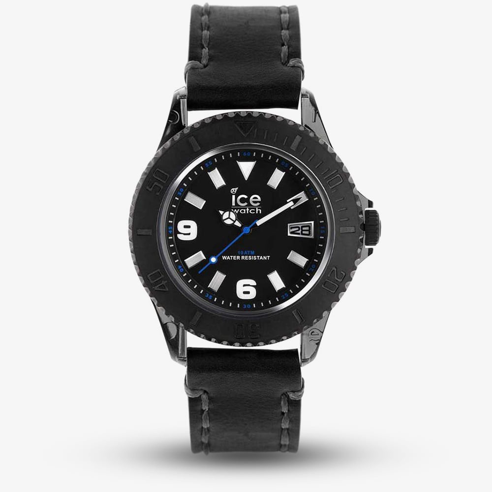 This elegant watch from Ice-Watch incorporates a black dial along with luminescent hands, complete with a functioning date window. Fastens securely using a black leather strap.