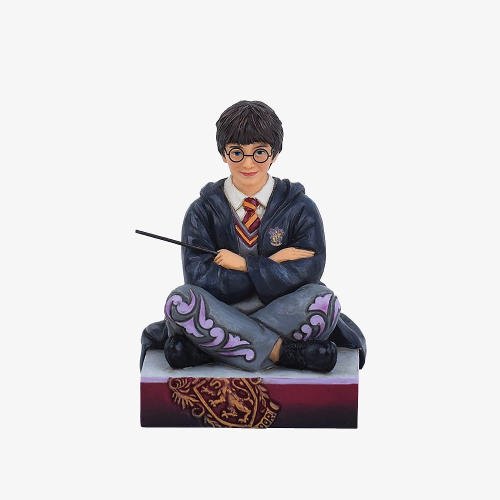Celebrate the hero of Hogwarts with the The Chosen One Figurine, designed by Jim Shore. Crafted from cast stone, this hand-painted figurine depicts Harry Potter sitting in his school robes with a determined expression, making it a must-have collectible or gift for any Harry Potter fan.