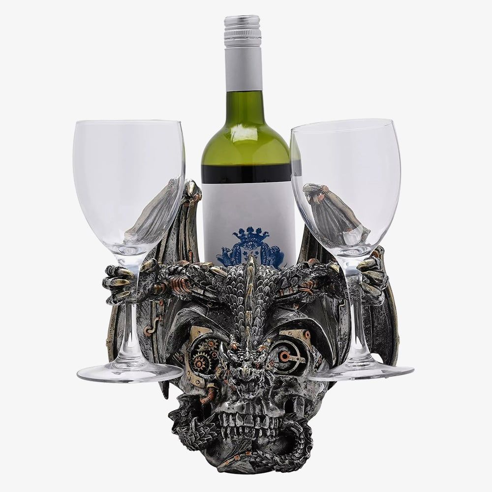 https://www.thbaker.co.uk/juliana-mystic-legends-steampunk-wine-and-glass-holder-69686179181Juliana Mystic Legends Steampunk Wine And Glass Holder 69686https://www.thbaker.co.uk/media/catalog/product/3/1/31-02-25156431_01.jpg59.9559.95GBPInStock/Gifts/Gifts/Gifts For Her/Gifts/Accessories/Home Accessories3687369050951236873629Mystic Legends Steampunk Skull and Dragon Wine and Glass Holder Capturing the gothic aesthetic of the Juliana Mystic Legends collection, this wine bottle and glass holder is crafted from high quality resin with a metallic silver effect finish. A combined design of a steampunk skull and dragon wings creates a striking sculpture sure to be the centrepiece of your home. Bottle and glasses not included.