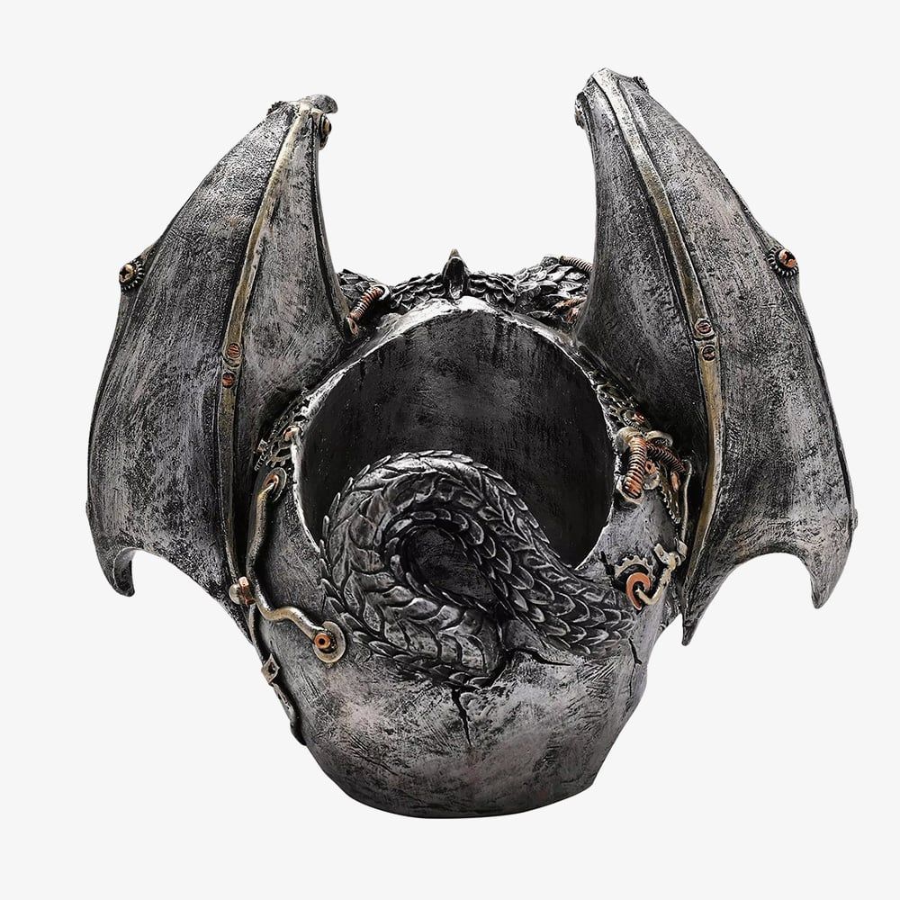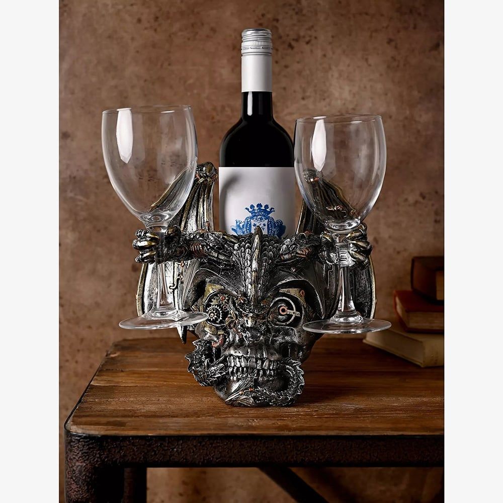 Capturing the gothic aesthetic of the Juliana Mystic Legends collection, this wine bottle and glass holder is crafted from high quality resin with a metallic silver effect finish. A combined design of a steampunk skull and dragon wings creates a striking sculpture sure to be the centrepiece of your home. Bottle and glasses not included.