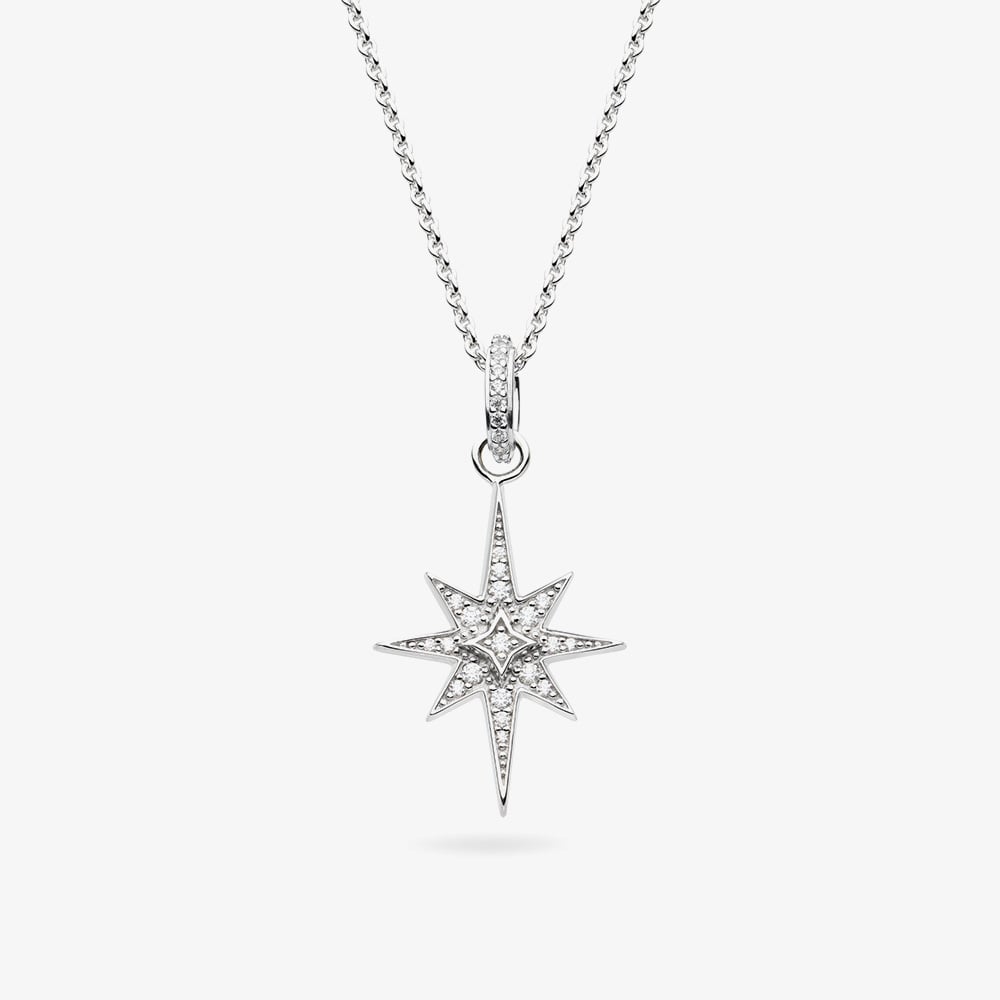 Radiating celestial elegance, the Winter 2025 edition Céleste North Star Midi Necklace features the iconic eight-pointed North Star pendant, suspended from a delicate pavé-set cubic zirconia bale. Crafted in sterling silver and designed to sit gracefully at 18", it sparkles with a subtle, guiding brilliance. Perfect worn alone or layered with other North Star pieces, this necklace adds a refined, celestial-inspired touch to any outfit and makes a meaningful, timeless gift.