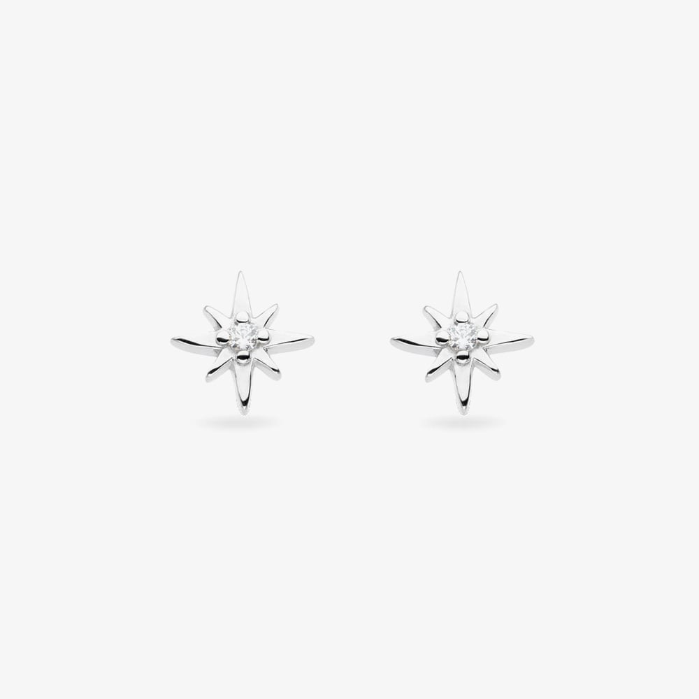 Delicate and radiant, the Winter 2025 limited edition Céleste North Star Petite Stud Earrings in sterling silver capture a miniature celestial sparkle. Each eight-pointed star features a sparkling cubic zirconia center, with silver points radiating like a tiny starburst inspired by the night sky. Perfect for stacking or adding subtle shimmer, these petite earrings bring refined sparkle to any day-to-night look.
