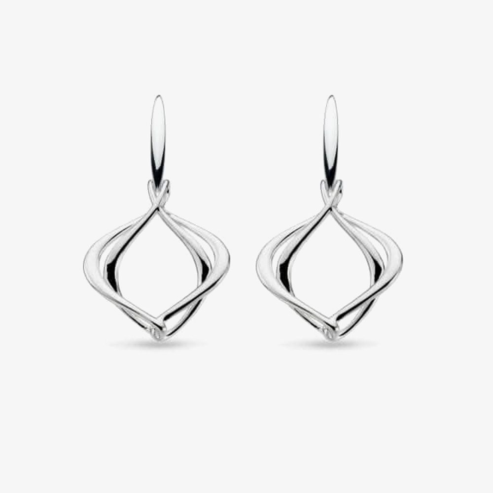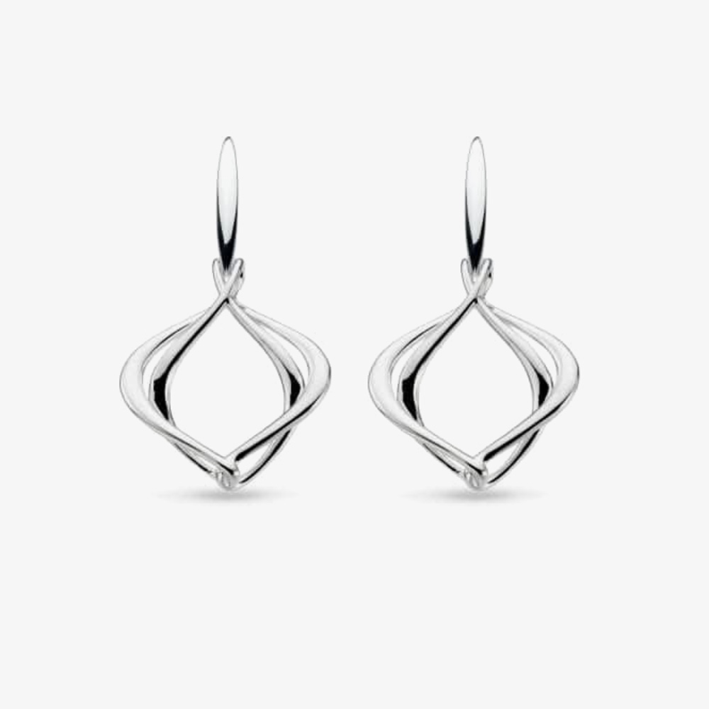 These drop earrings feature a striking three-dimensional design, crafted from two layers of highly polished sterling silver. The shapely strands gracefully weave and interlock, creating a continuous, fluid form that is utterly captivating and distinctive. The intricate yet stately design makes them a versatile and cherished accessory for any occasion.