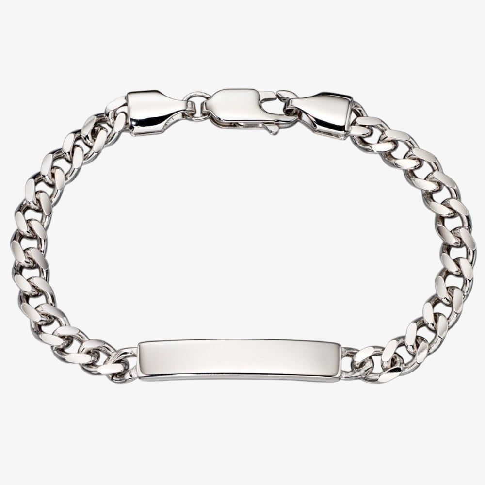 This bracelet features a smooth, engravable rectangular plate at its centre, perfect for adding your child's name, initials, date of birth, or a short, special message. This personal touch transforms the bracelet into a cherished memento. The sturdy yet comfortable sterling silver chain is designed to be gentle, making it suitable for everyday wear. The secure clasp ensures the bracelet stays safely in place.