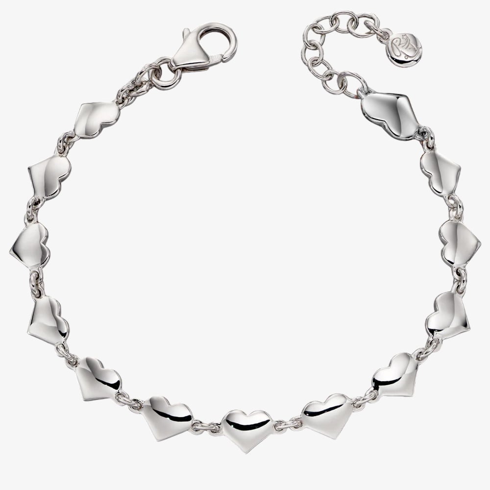 This bracelet showcases a delicate sterling silver chain adorned with multiple petite heart charms. Each heart is lovingly crafted, symbolising affection and adding a touch of playful elegance to your wrist. The varying sizes and arrangements of the hearts create a visually appealing and heartwarming design.