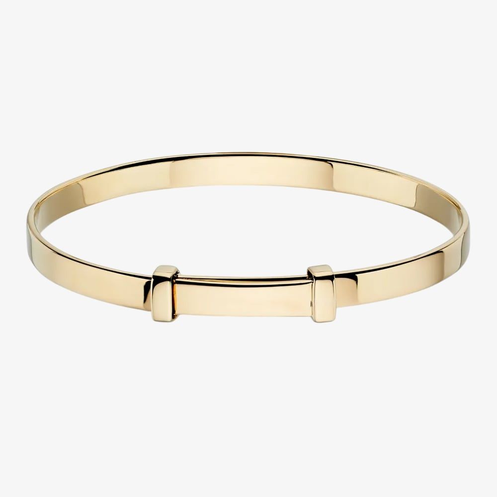 With an expandable design, this baby bangle ensures a comfortable and secure fit. Its smooth, polished gold-plated finish adds a touch of sophistication, making it perfect for both special occasions and everyday wear. Lightweight yet durable, this bangle is made to be a cherished keepsake.