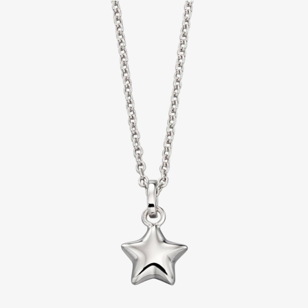 This necklace showcases a fine sterling silver chain that gracefully suspends a smoothly polished star pendant. The simple yet elegant design of the star makes it a versatile piece that can be paired with any outfit, adding a touch of celestial charm to your look.