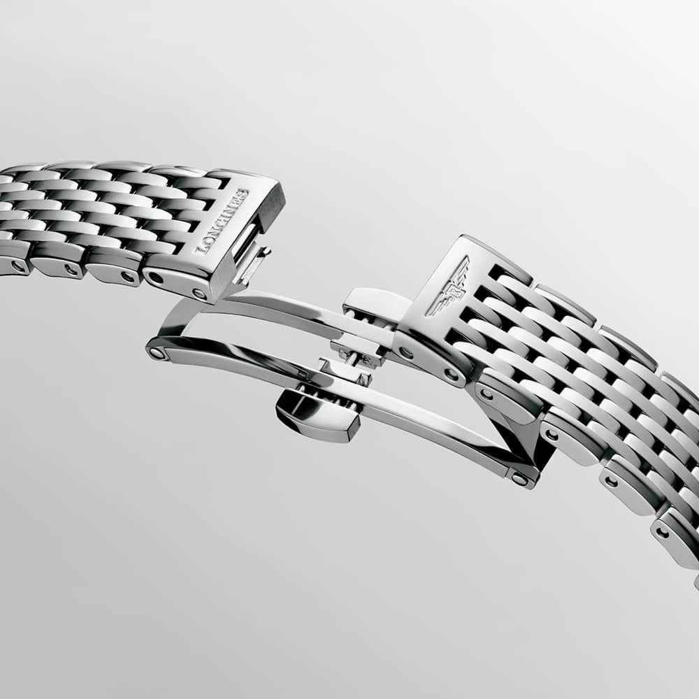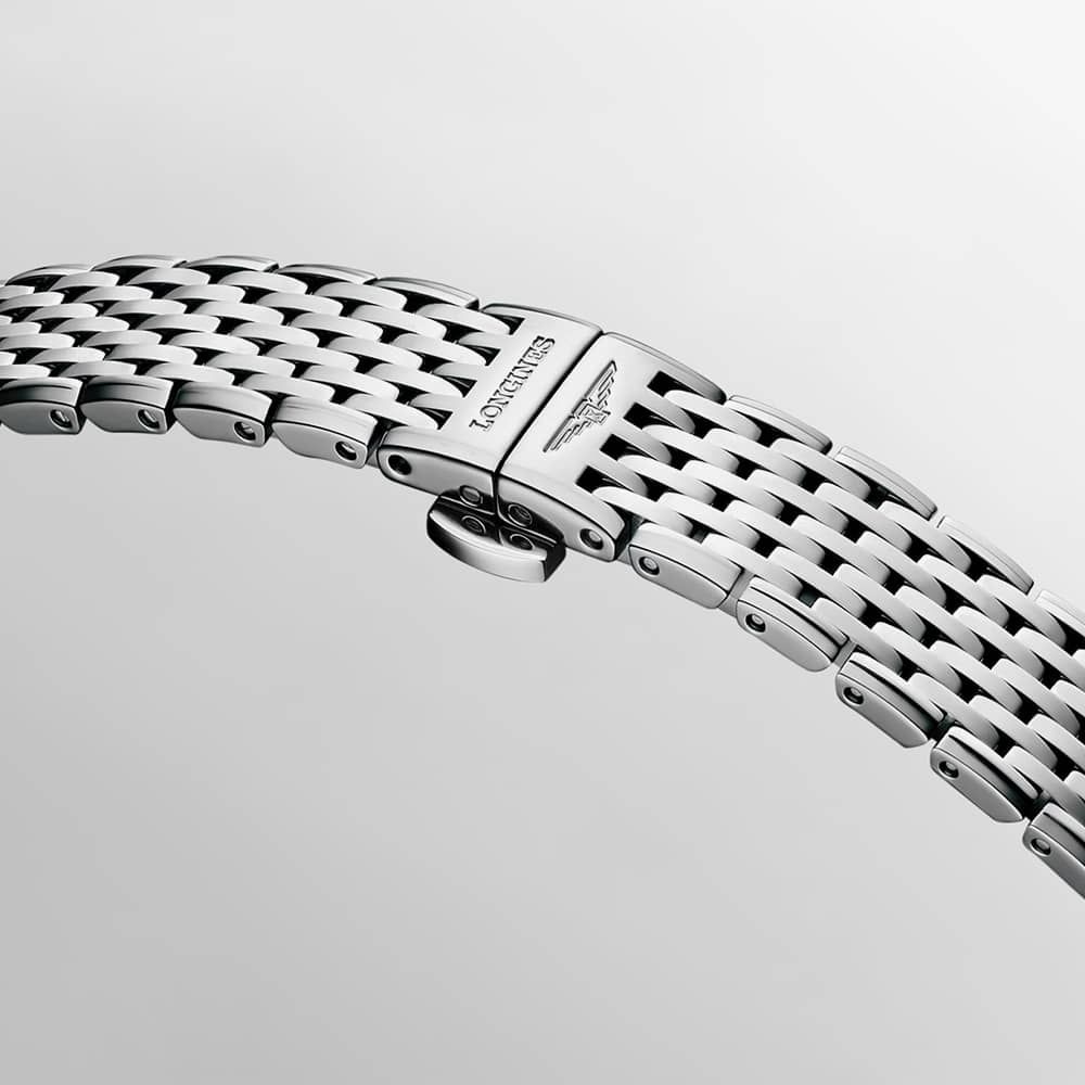 La Grande Classique de Longines epitomises Longines’ classic elegance and timeless sophistication, distinguished by its ultra-slim profile and diverse range of versions. This elegant ladies' stainless-steel watch features a refined silver dial adorned with sparkling diamond hour markers.