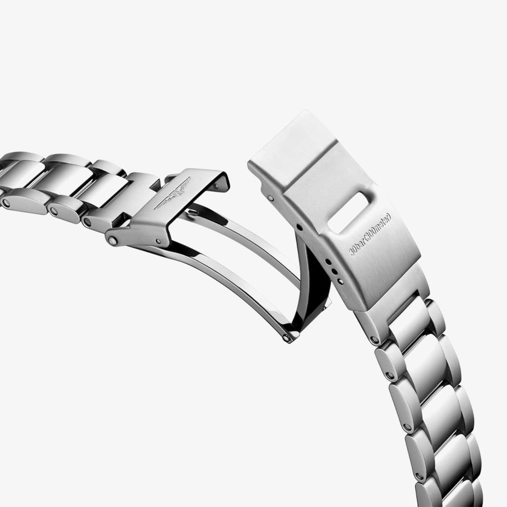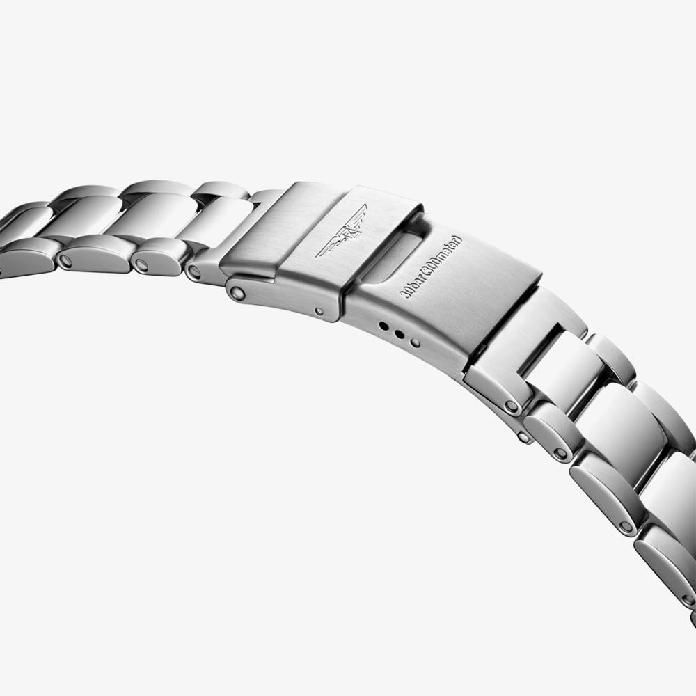 • Presented on a silver stainless steel bracelet with push button deployment clasp.
